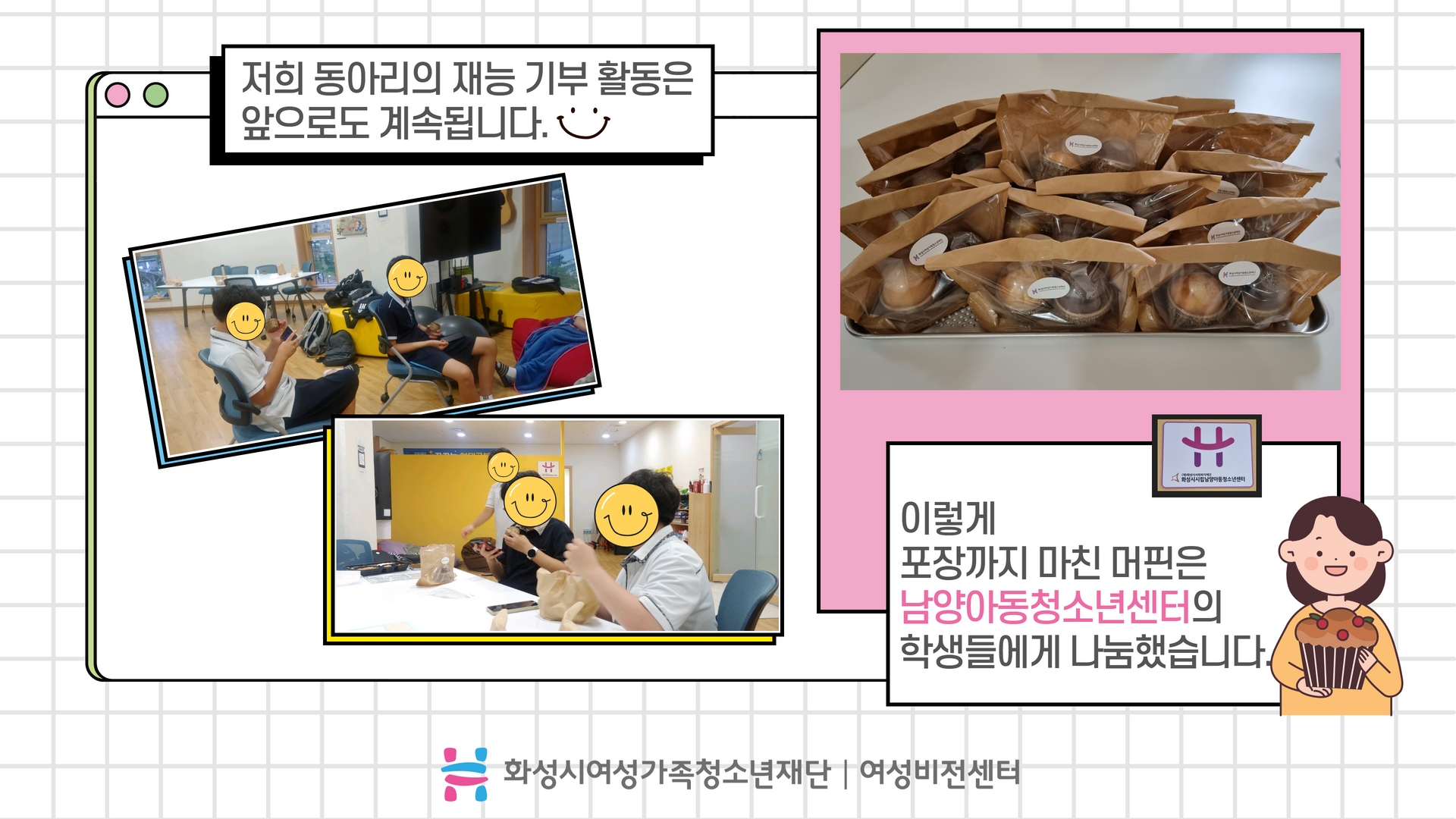 안녕하세요! 화성시여성비전센터 가족사업팀입니다. 모두누림센터 제과 학습동아리 오자매빵수다에서 재능기부활동을 진행했습니다.