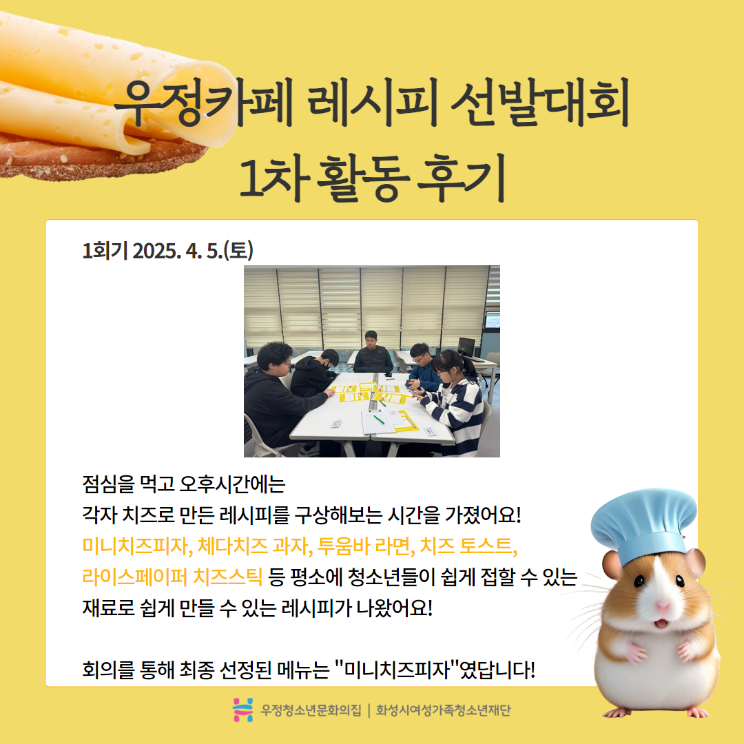 여러분 다들 치즈 좋아하시죠? 우정카페 레시피 선발대회 1차의 주제는 "치즈" 였어요!