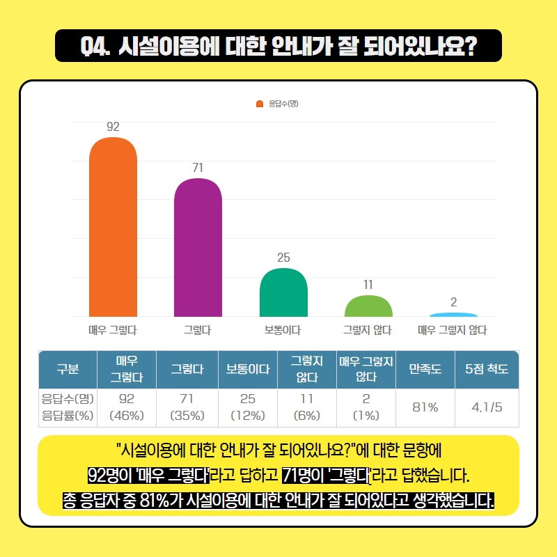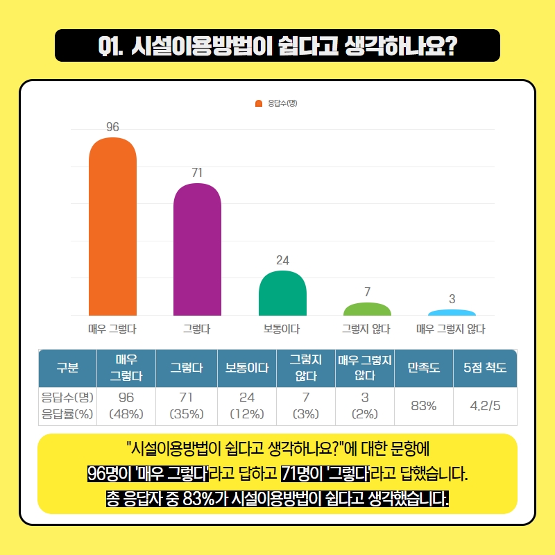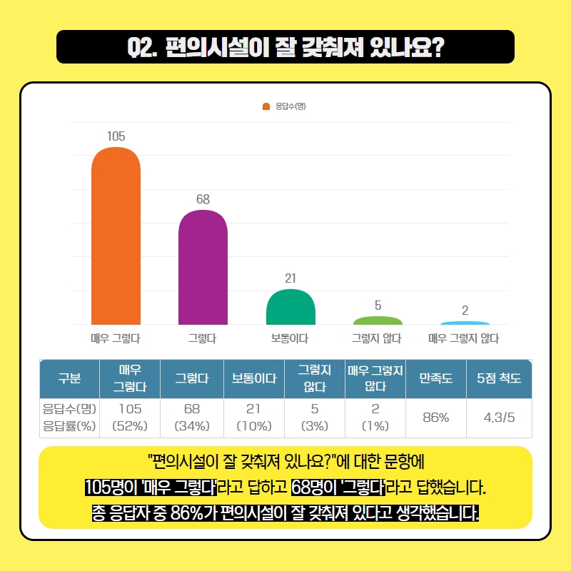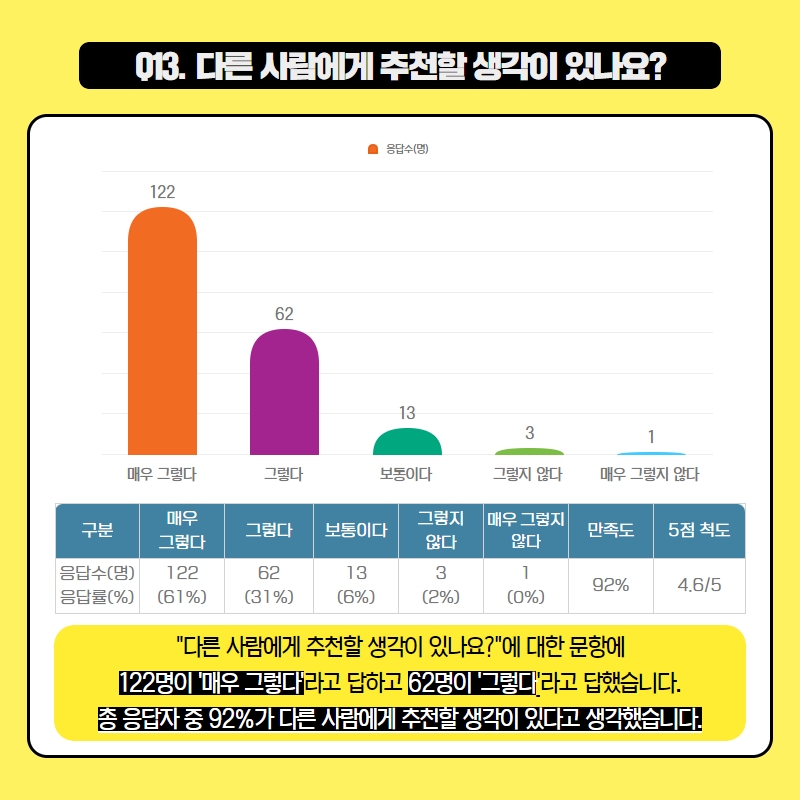 2021.11.19.(금)~11.28.(일)까지 진행한 만족도조사결과를 알려드려요. 응답해준 모든 친구들 모두 고맙고 더 발전하는 화성시청소년수련관이 될게요!