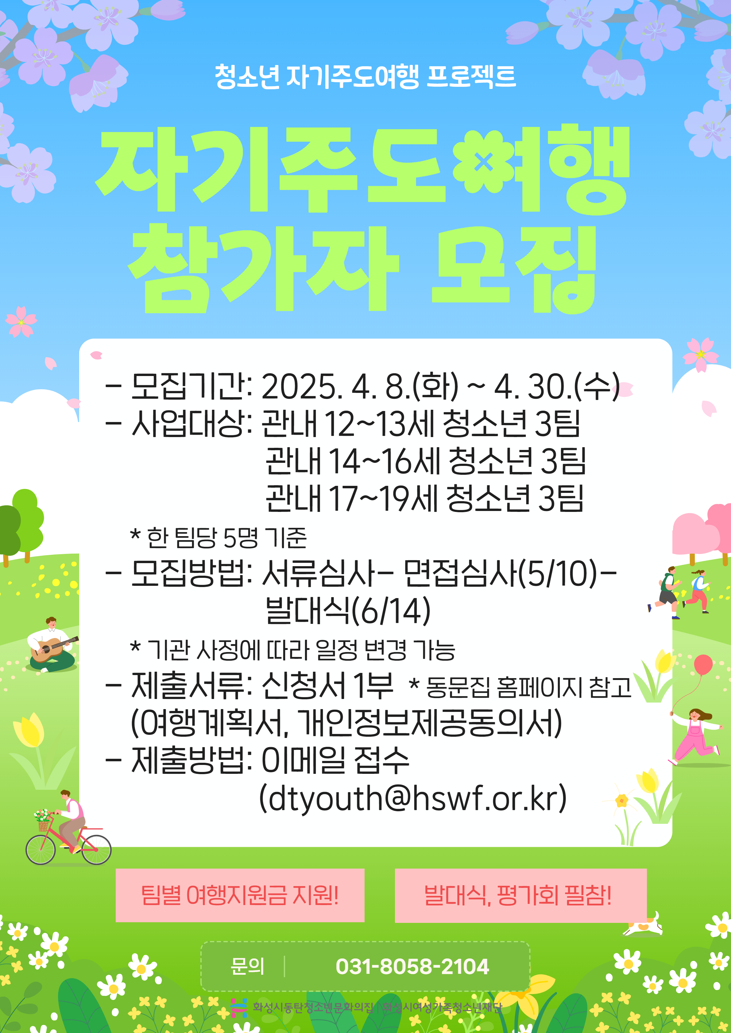 안녕하세요. 동탄청소년문화의집입니다. 2025년 자기주도여행 참가자 모집 안내 드립니다.