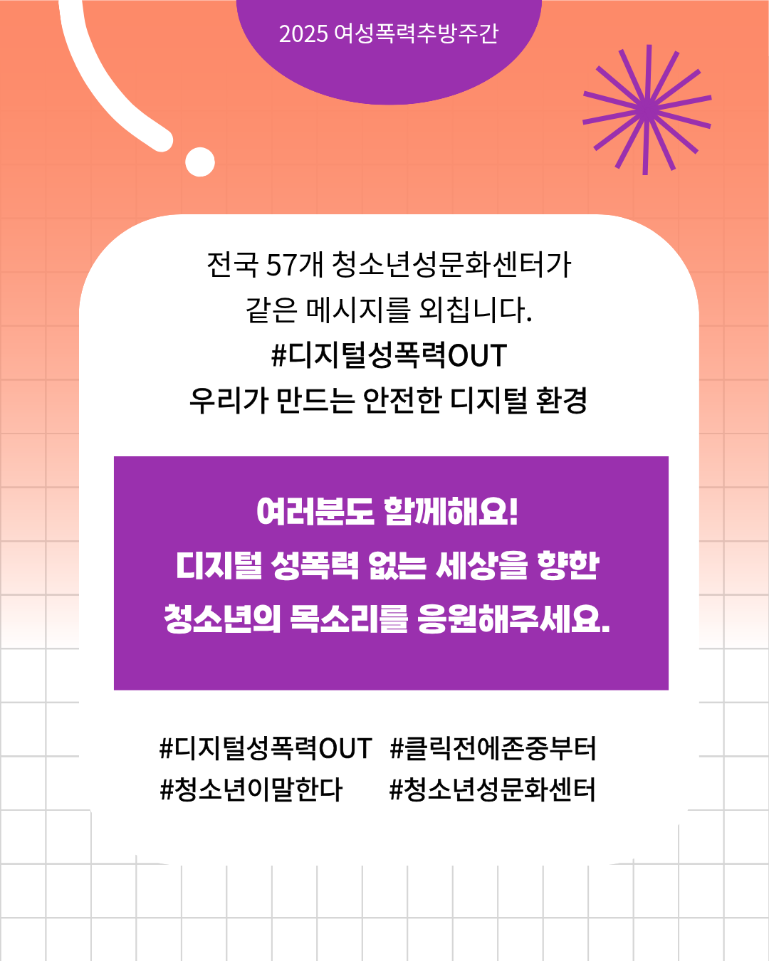 #6. 전국 57개 청소년성문화센터가 같은 메시지를 외칩니다. #디지털성폭력 OUT 우리가 만드는 안전한 디지털 환경