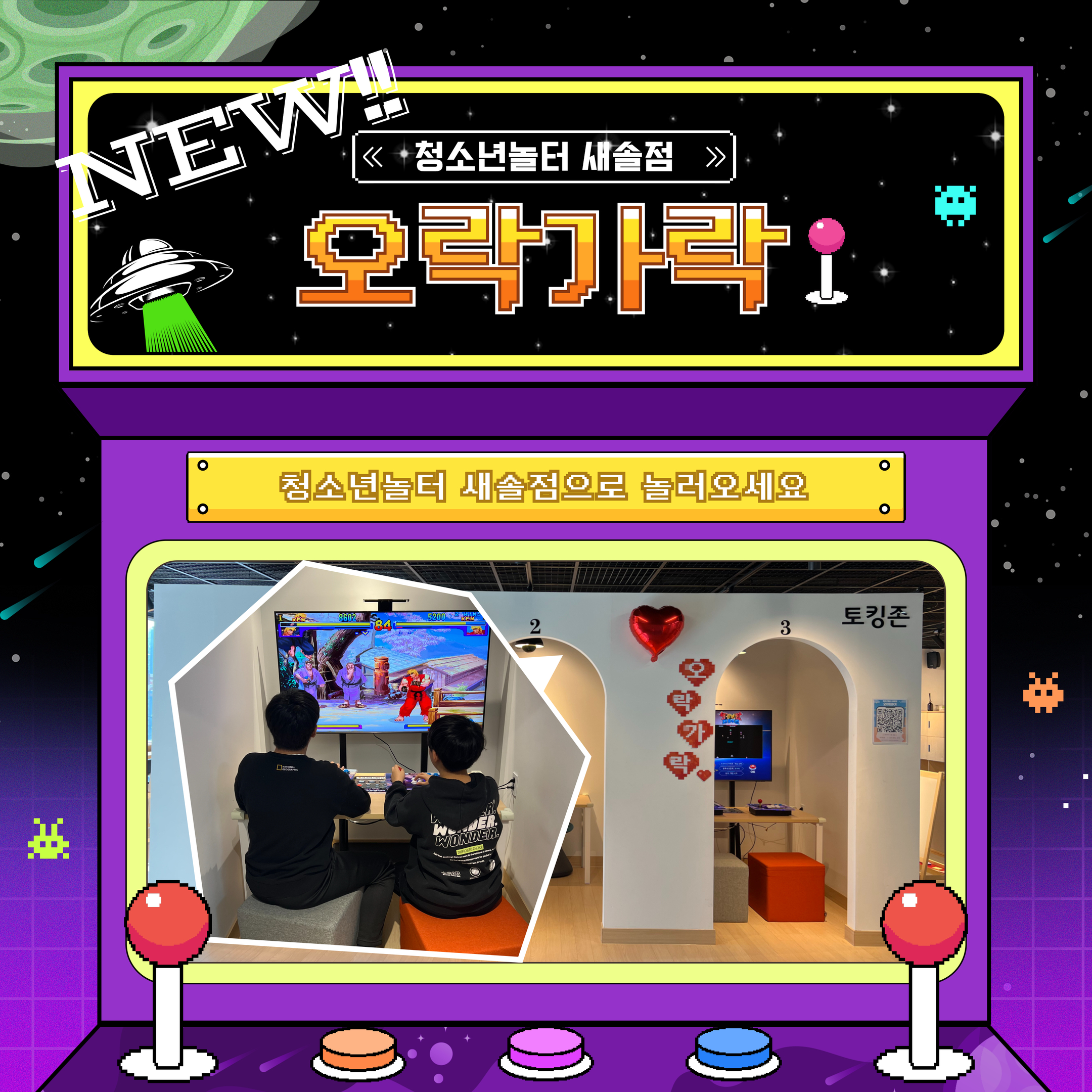 청소년놀터 새솔점에 새로운 놀거리가 생겼다고!? 지금 바로 청소년놀터 새솔점으로 놀러가자~ ? 혼자, 친구와 함께, 선생님과 함께 다양하고 재미있는 게임이 가득 있는 오락가락 하러 놀러오세요 ? |
