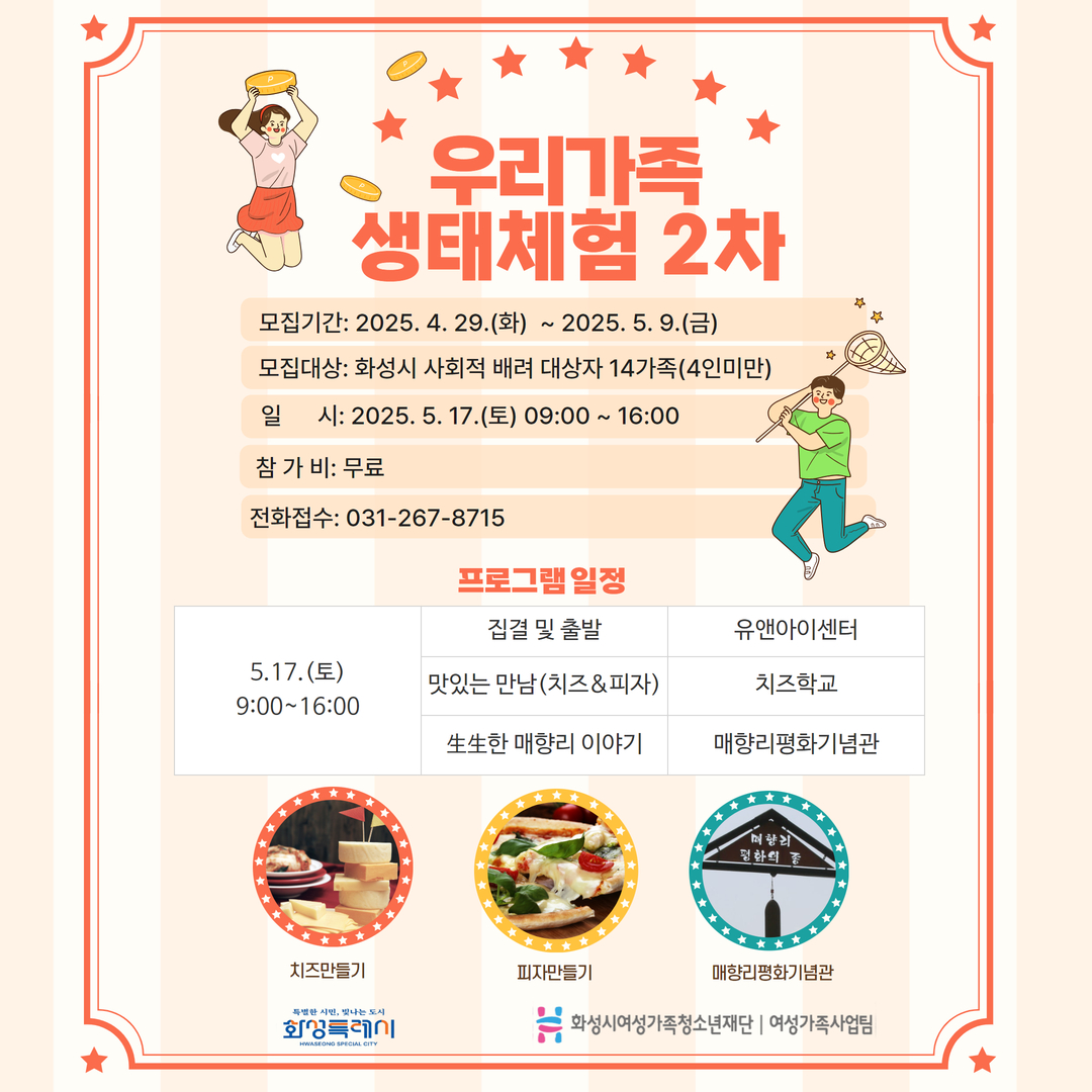 | 제목 | [화성시여성비전센터] 2025년 우리가족 생태체험 2차 모집 안내 | ||