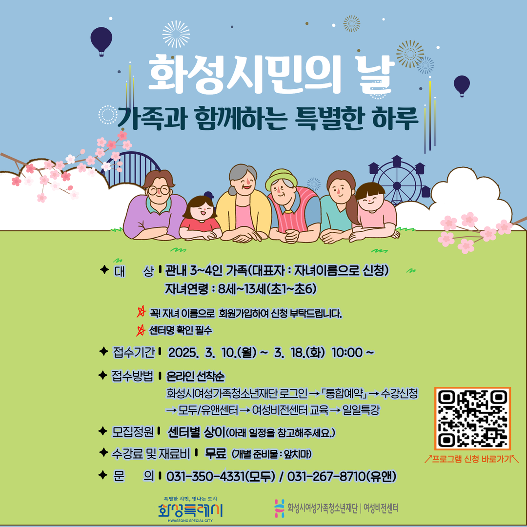 제목 [화성시여성비전센터] 2025년 화성특례시 출범 및 화성시민의 날 기념행사안내 운영센터 모두누림센터 작성일 2025년 3월 7일 14시 4분 조회수 814 첨부 파일 아이콘[인스타]화성시민의 날 1.png (535.17KB)다운로드 아이콘 파일 아이콘[인스타]화성시민의 날 2.png (470.21KB)다운로드 아이콘 목록보기