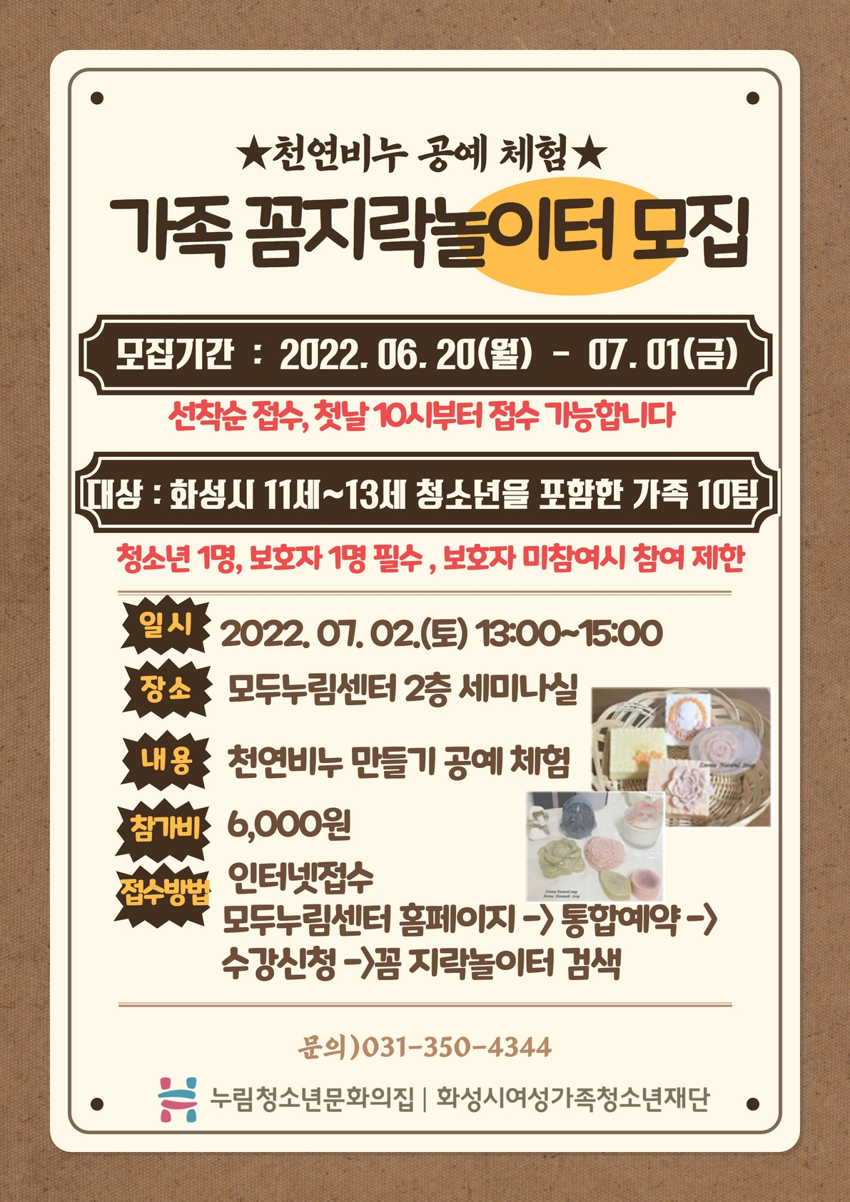 제목 [누림청소년문화의집] 7월 꼼지락놀이터 참가자 모집