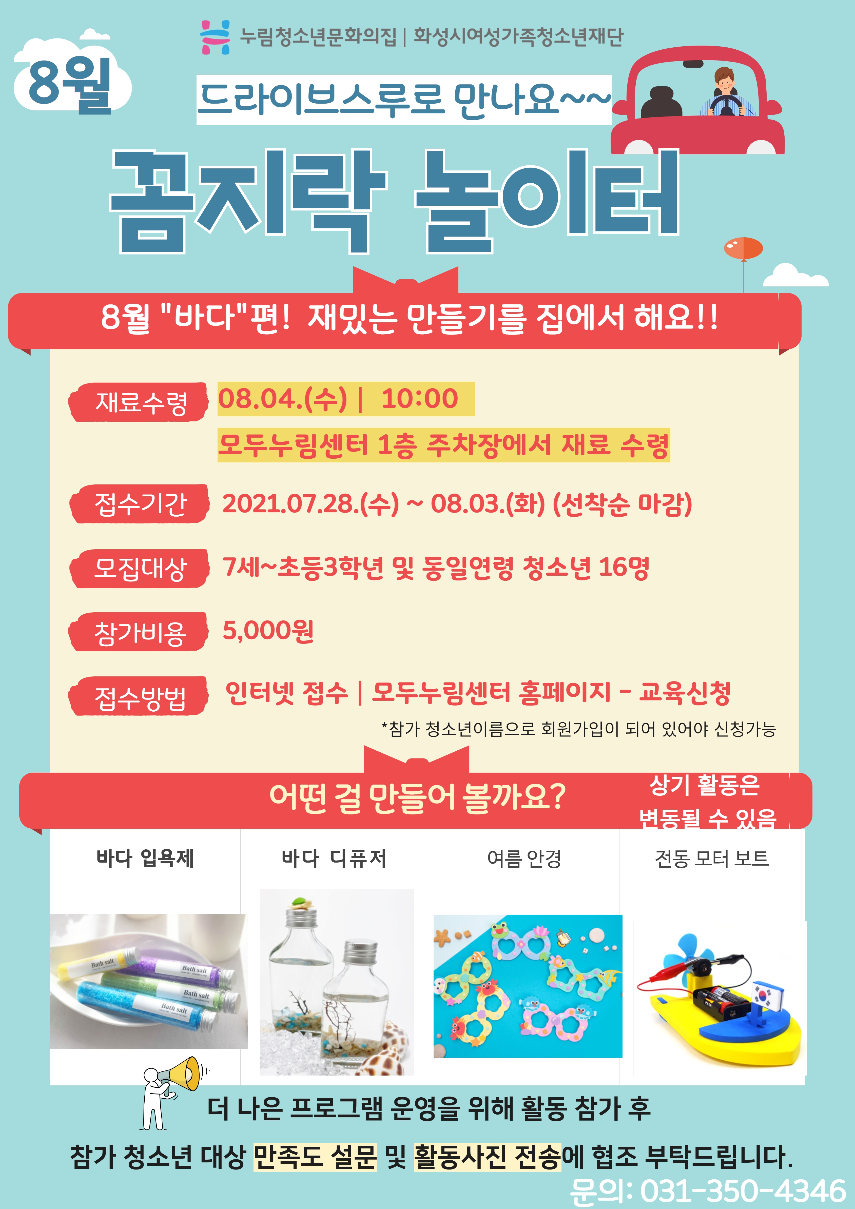 8월 꼼지락놀이터 드라이브스루 방식으로 운영됩니다.