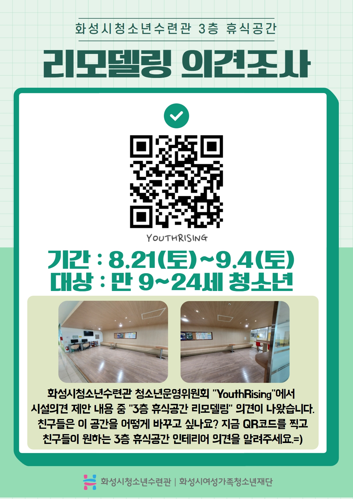 화성시청소년수련관 3층 휴식 공간 리모델링 의견 조사