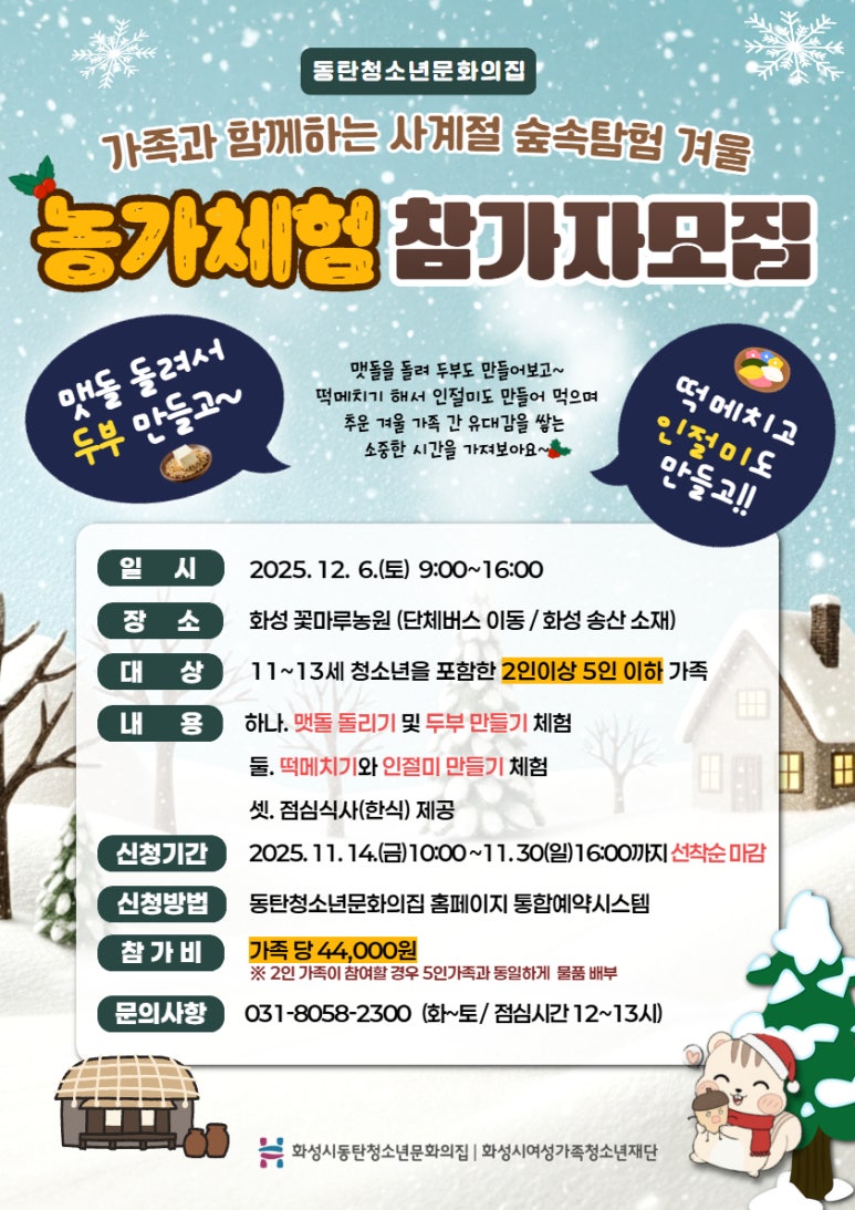| 제목 | [동탄청소년문화의집] 가족과 함께하는 사계절 숲속탐험 겨울 참가자모집 | ||