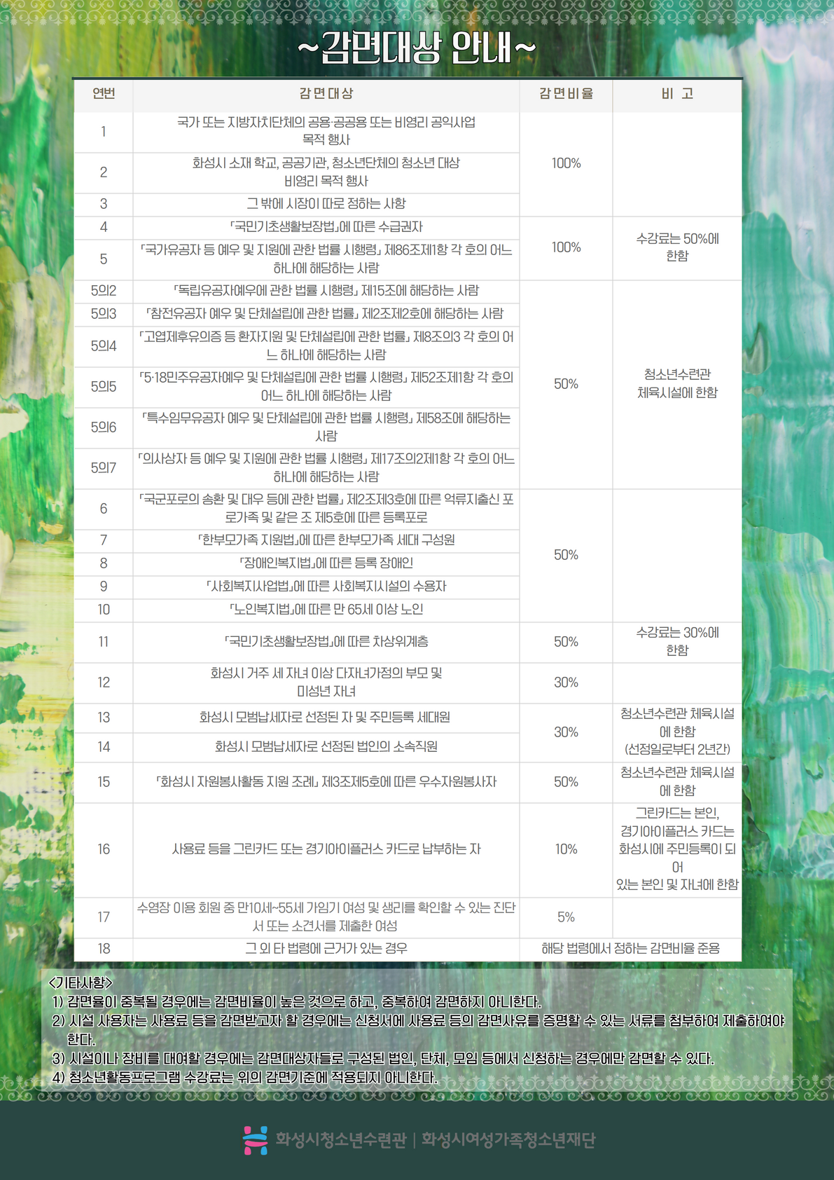 | 제목 | [화성시청소년수련관] 7월 실내체육관 프로그램 신규 및 추가접수 안내(정정) | ||