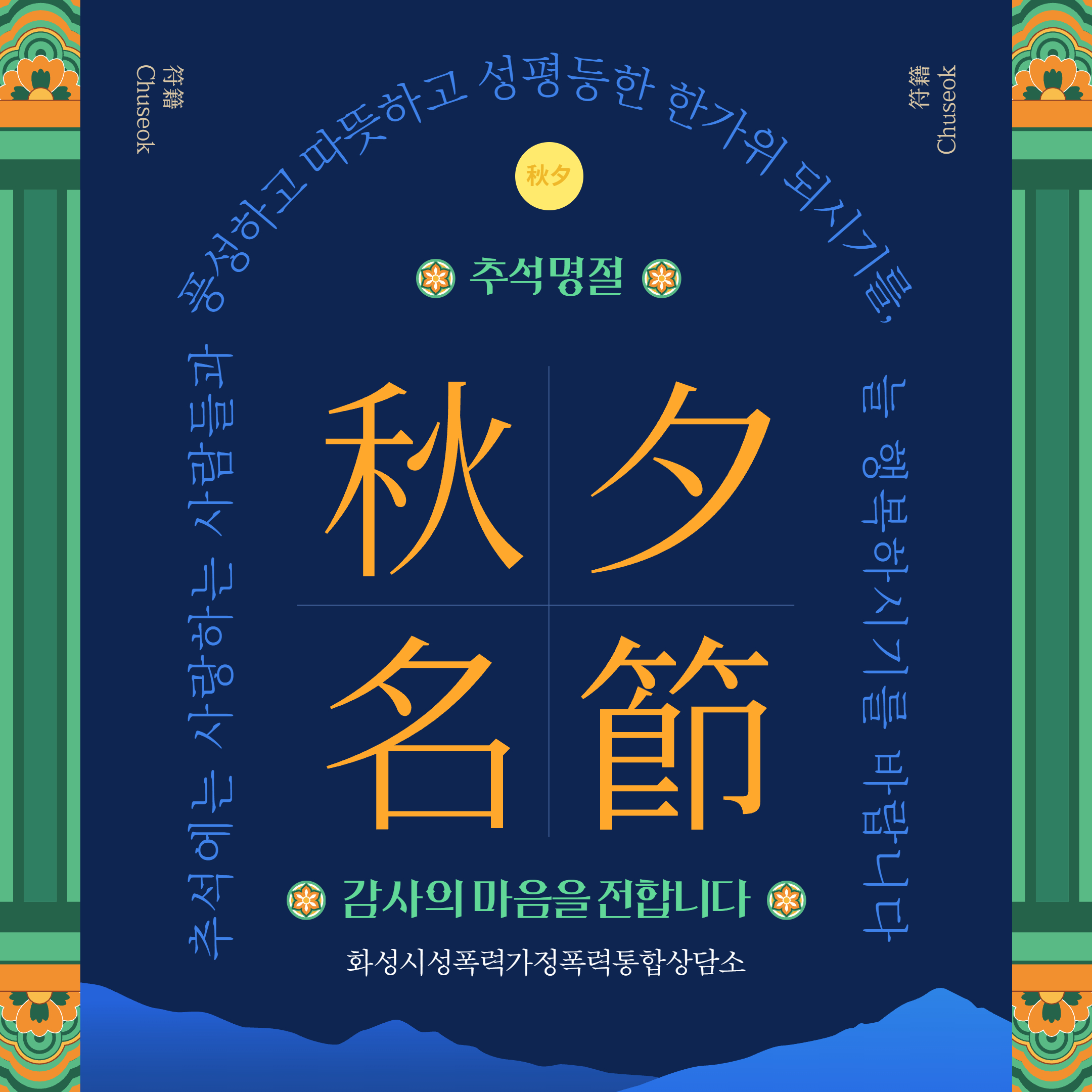 제목 풍성하고 따뜻하고 성평등한 한가위 되세요 운영센터 화성시성폭력가정폭력통합상담소 작성일 2025년 10월 4일 8시 49분 조회수 384 첨부 파일 아이콘추석인사.jpg (1.21MB)다운로드 아이콘 목록보기