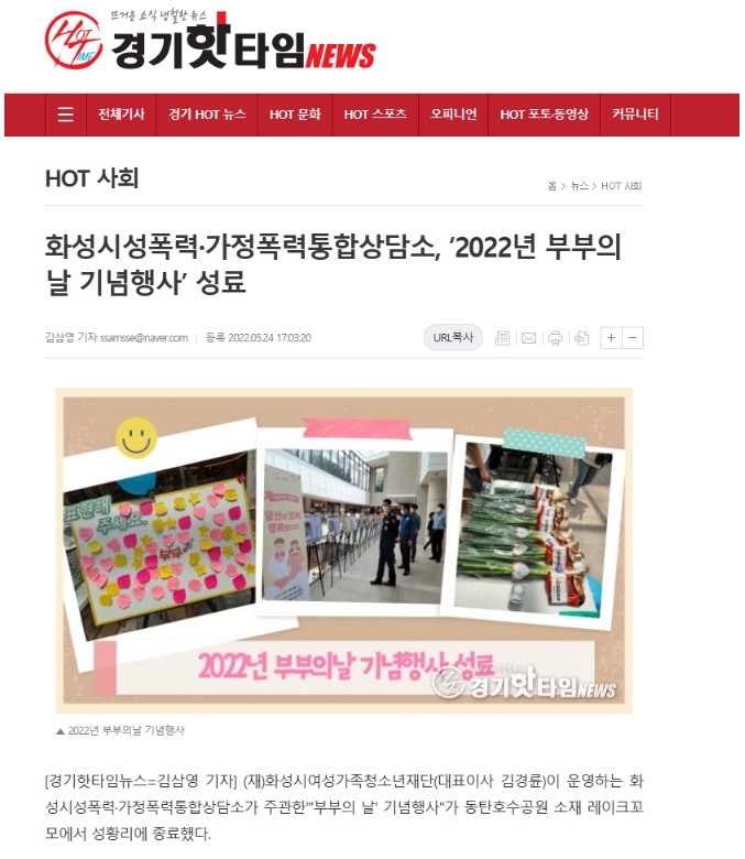 화성시성폭력·가정폭력통합상담소, ‘2022년 부부의날 기념행사’ 성료(2022.05.24.) 재단에 바랍니다 상세 운영센터 화성시성폭력가정폭력통합상담소 등록일 2022년 6월 3일 11시 39분 조회수 728 [언론보도처] https://www.hswf.or.kr/fmcs/480?action=read&action-value=a6eb38d889c6bb5a6fda33447749a6bf 파일 아이콘보도자료.jpg (103.62KB)다운로드 아이콘 목록보기