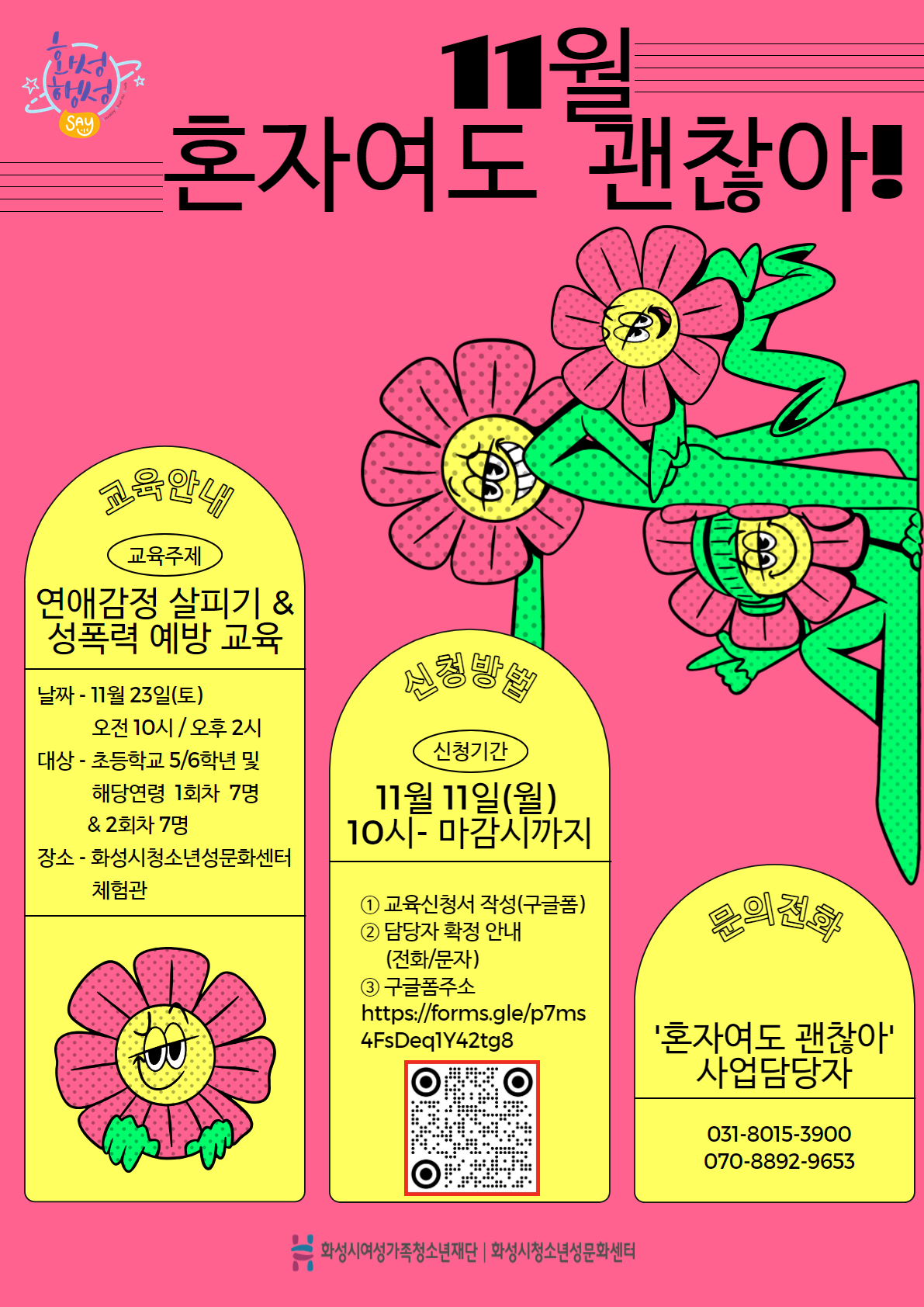 | 제목 | [화성시청소년성문화센터] 2024년 11월 혼자여도 괜찮아 신청 안내 | ||