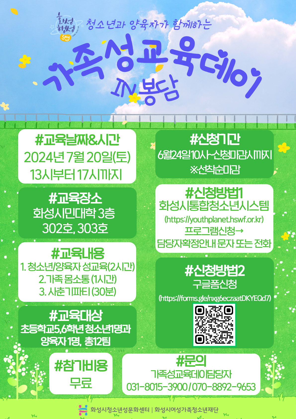 | 제목 | [화성시청소년성문화센터] 2024년 가족성교육데이 IN 봉담 신청안내 | ||
