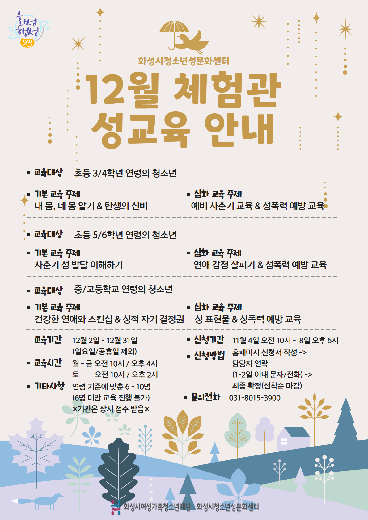 화성시청소년성문화센터 2024년 12월 체험관성교육 신청 안내 드립니다.