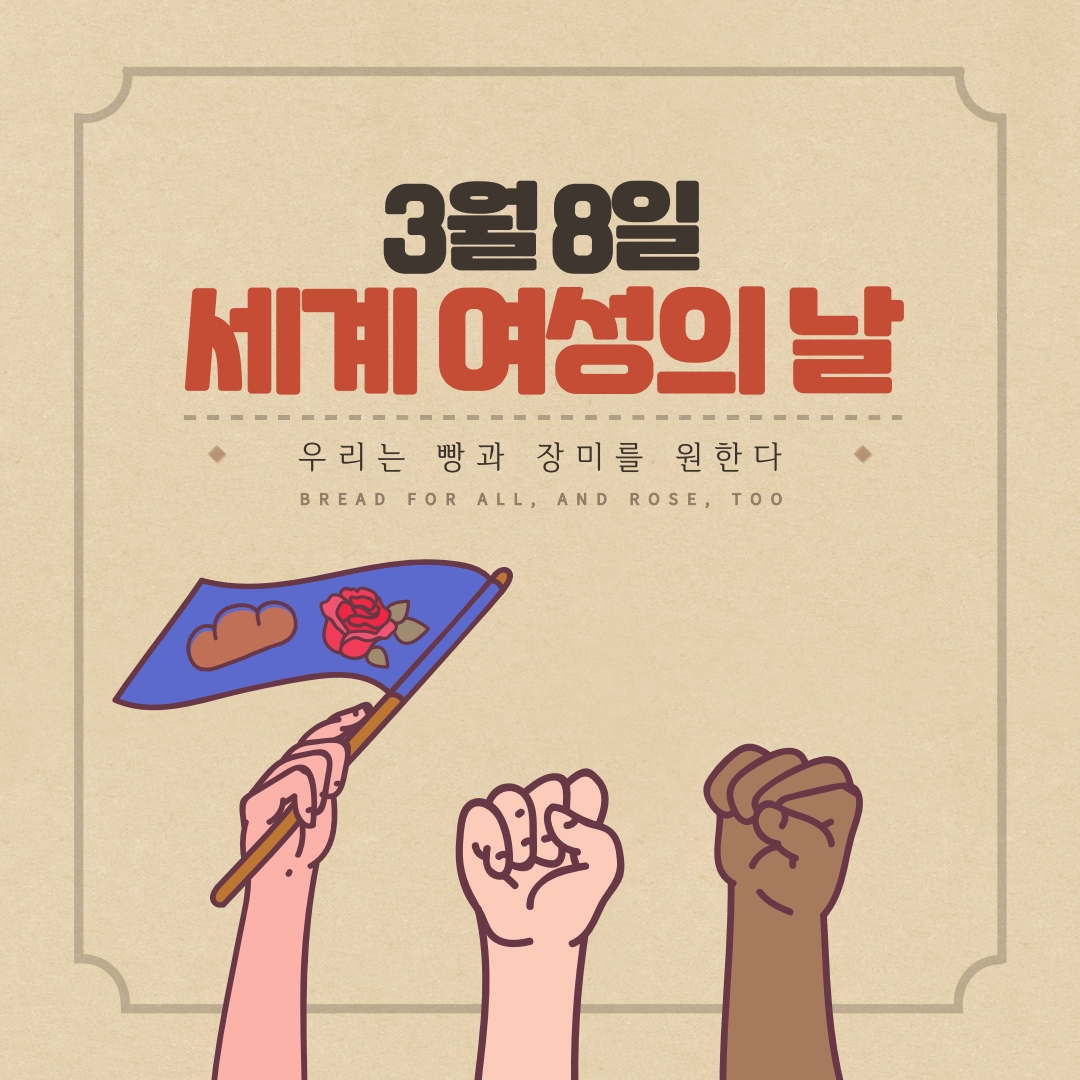지금으로부터 117년 전 1908년 3월 8일, 미국의 1만 5천 여성노동자들이 뉴욕의 한 광장에 모여 시위를 벌입니다. "우리는 빵과 장미를 원한다!" 왜 빵과 장미였을까요?