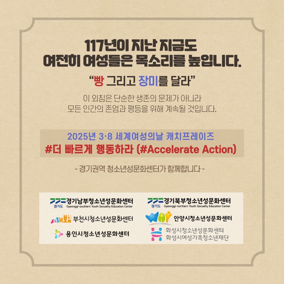 2025년 3 .8 세계 여성의 날 캐치프레이즈 # 더 빠르게 행동하라 (#Accelerate Action)