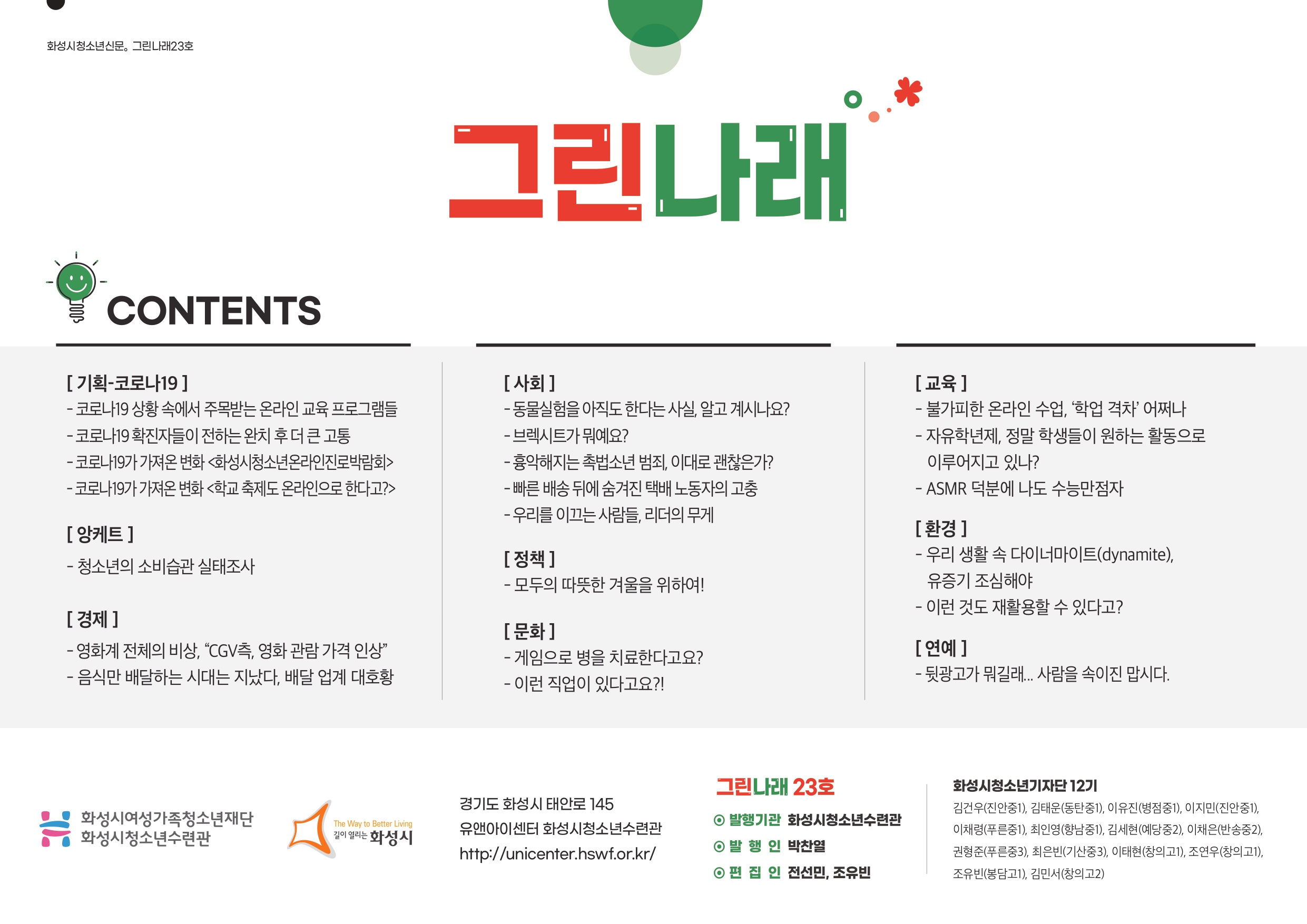 게시판 검색 검색 영역 : 전체 검색제목내용검색어 : 검색 * 총 33건이 등록되어있습니다. (총 9페이지 중 3페이지) 페이지 크기 선택 페이지 크기 : 10개씩 보기20개씩 보기30개씩 보기40개씩 보기50개씩 보기보기 그린나래 25호 2022.02.16 419 그린나래 24호 2022.02.16 417 그린나래 23호 2022.02.16 391 그린나래 22호 2022.02.16 325 처음 1 2 3 4 5 다음 마지막