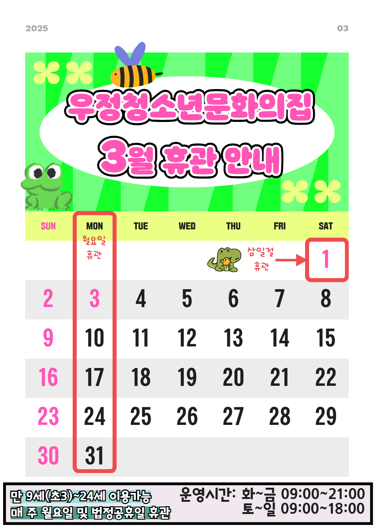 문의 및 접수처 : 031-351-2557 휴관일 : 월요일, 법정공휴일