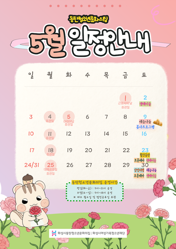 | 제목 | [동탄청소년문화의집] 5월 동탄청소년문화의집 일정 안내 | ||