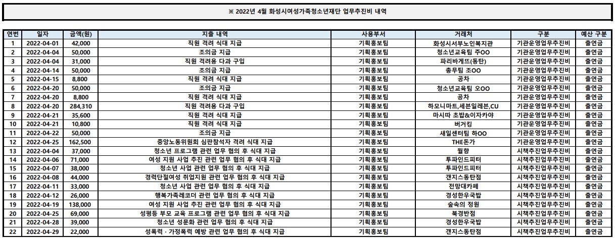 제목 업무추진비 2022년 4월 업무추진비 내역 작성일 2022년 5월 13일 15시 30분 조회수 387 첨부 파일 아이콘2022년 4월 업무추진비 내역.jpg (256.7KB)다운로드 아이콘 목록보기