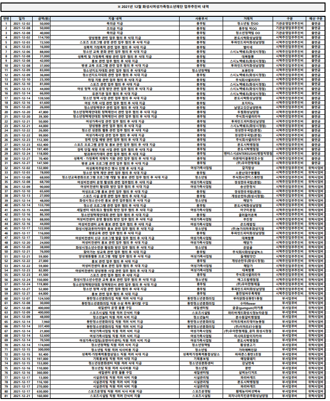 제목 업무추진비 2021년 12월 업무추진비 내역 작성일 2022년 1월 12일 15시 50분 조회수 416 첨부 파일 아이콘2021년 12월 업무추진비 내역.pdf (135.76KB)다운로드 아이콘 파일 아이콘2021년 12월 업무추진비 내역.png (324.77KB)다운로드 아이콘 목록보기