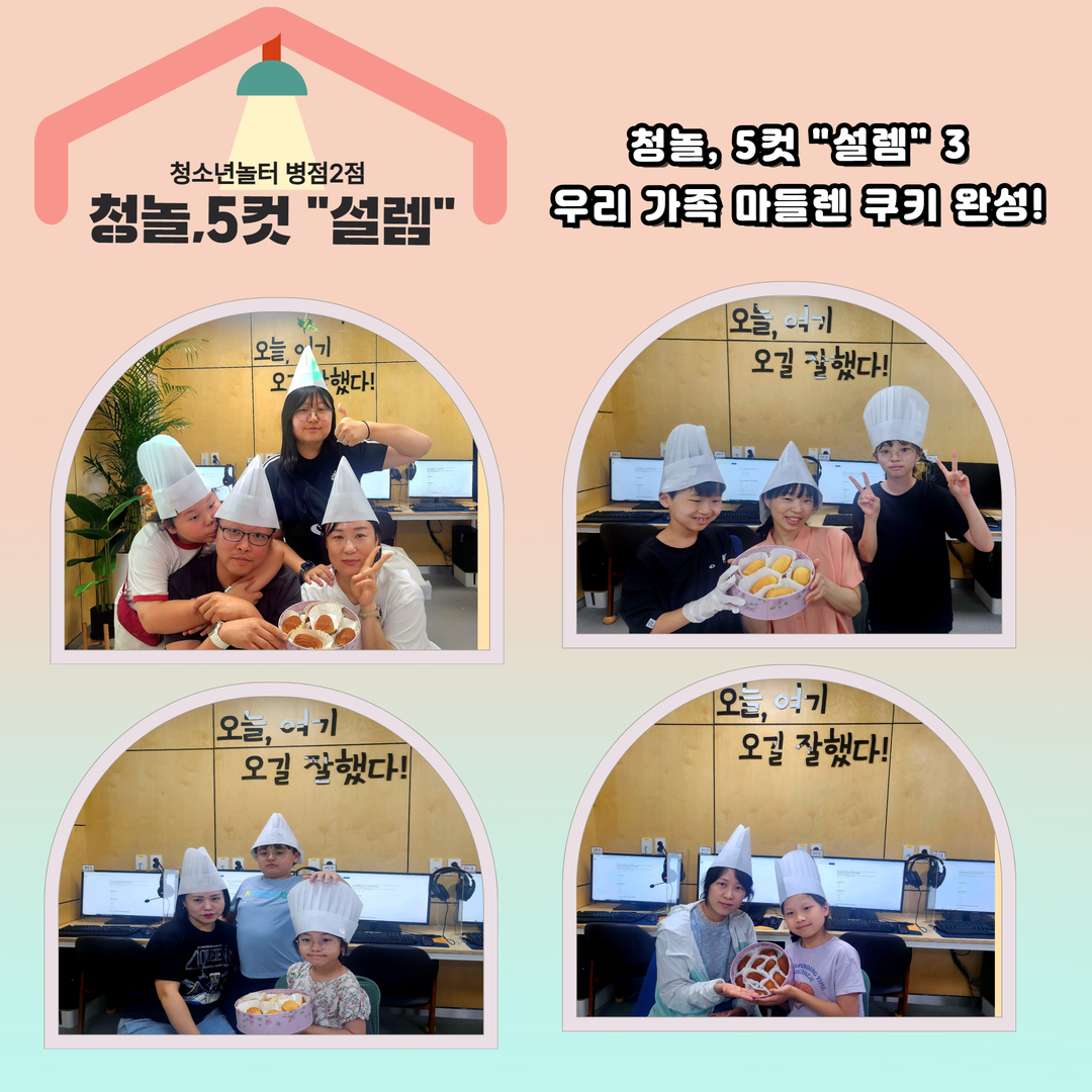 <3면> 청소년놀터 병점2점 청놀,5컷 설렘2 가족오락관 디딤 플레이 <4면> 청소년놀터 병점2점 청놀,5컷 설렘3 우리 가족 마들렌 쿠키 완성! <5면> 청소년놀터 병점2점 청놀,5컷 설렘4 지역 청소년 가족들과 함께해서 더 즐겁고 풍성했던 2025년 청놀,5컷 설렘 끝~~~! 2026년에도 청소년놀터 가족프로그램에 더 많은 괌심과 참여를 부탁드립니다.
