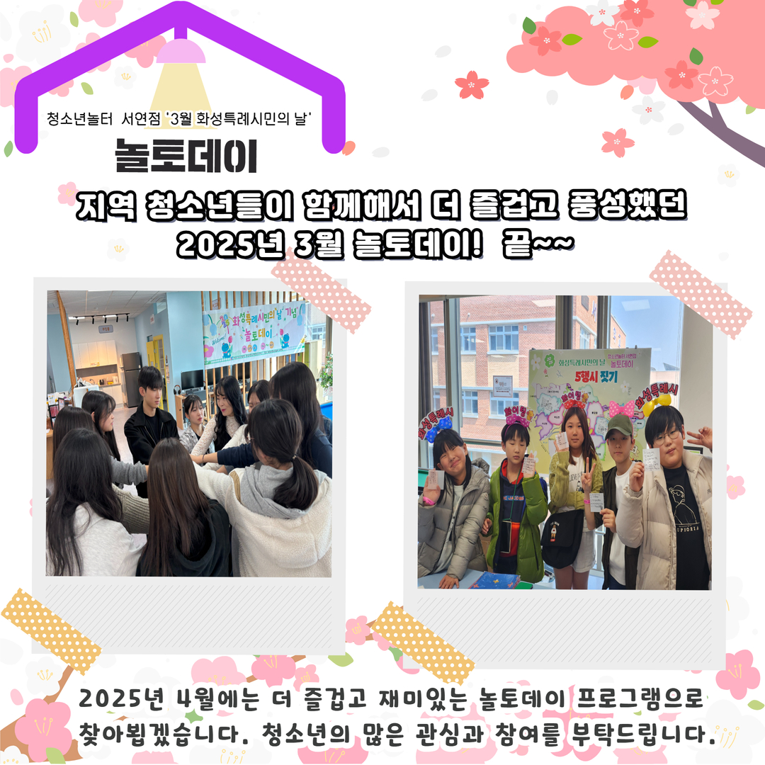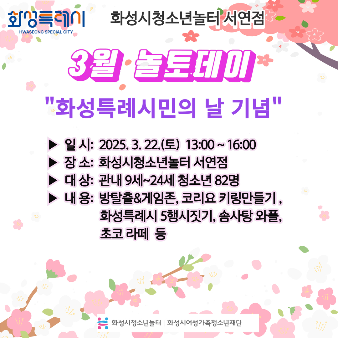 [청소년놀터 서연점] 3월 "화성특례시민의 날" 놀토데이
