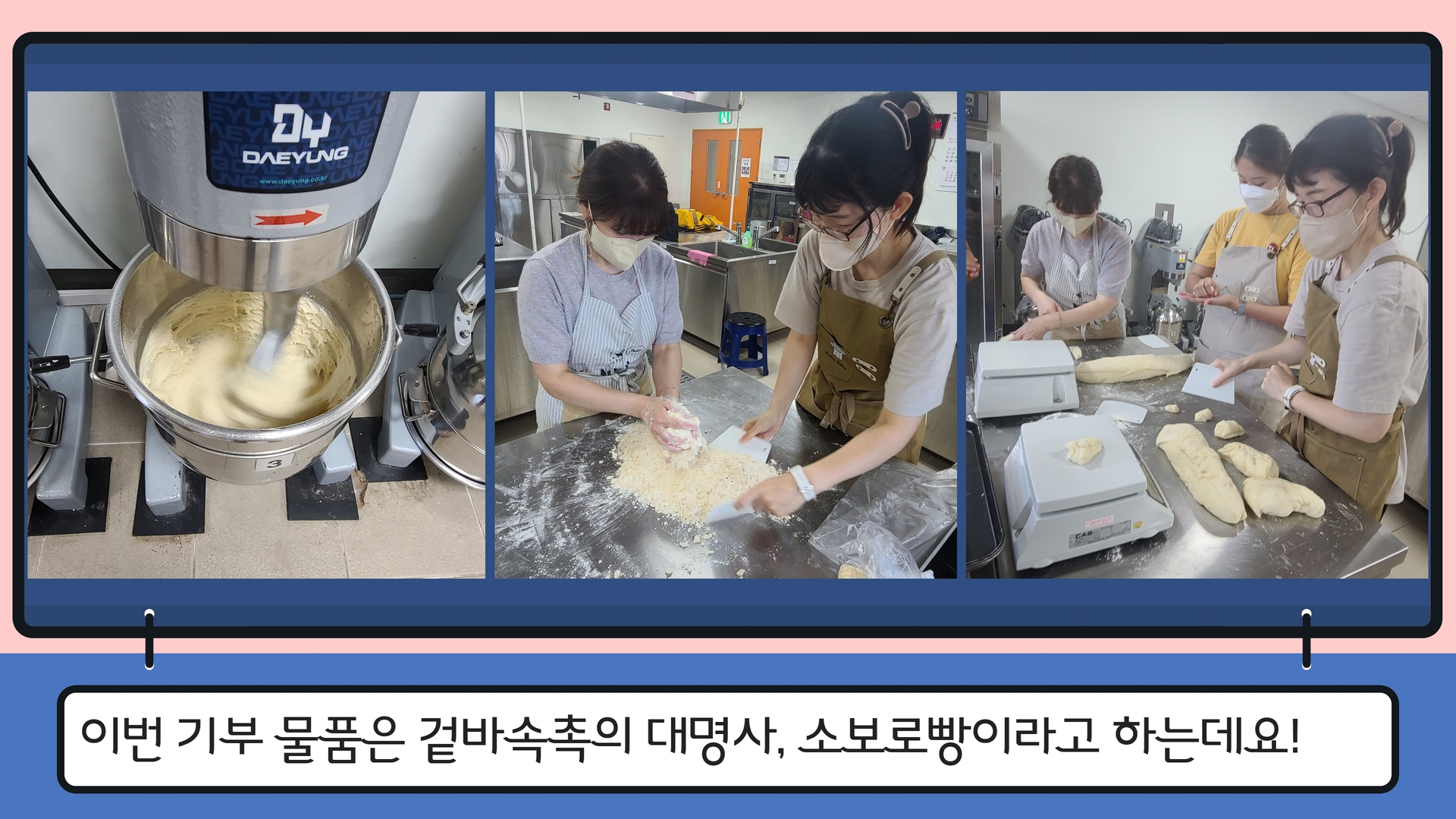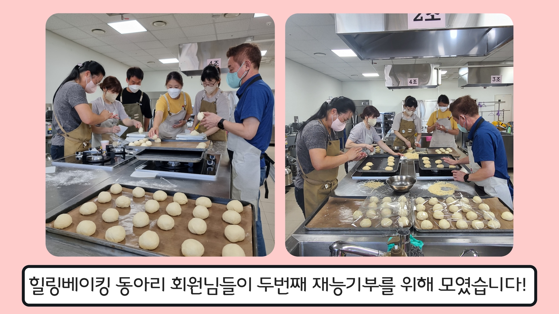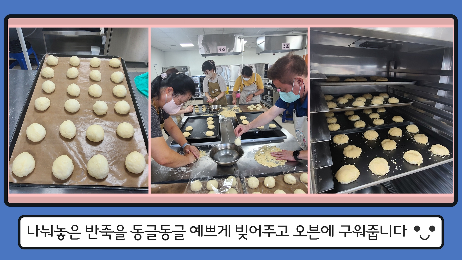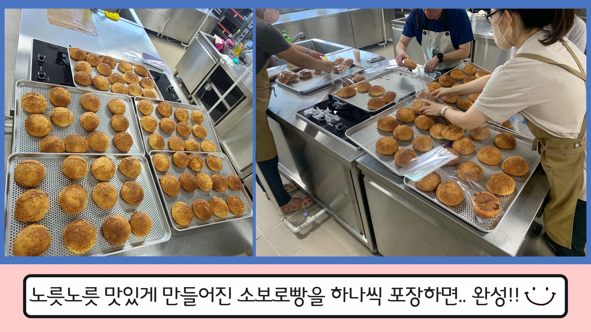 힐링베이킹 동아리 회원님들이 두번째 재능기부를 위해 모였습니다! 이번 기부 물품은 겉바속촉의 대명사, 소보로빵이라고 하는데요! 나눠놓은 반죽을 동글동글 예쁘게 빚어주고 오븐에 구워줍니다 :) 노릇노릇 맛있게 만들어진 소보로빵을 하나씩 포장하면.. 완성!! 포장한 소보로빵은 동아리회원님들을 대신하여 기부처에 전달 완료했습니다~