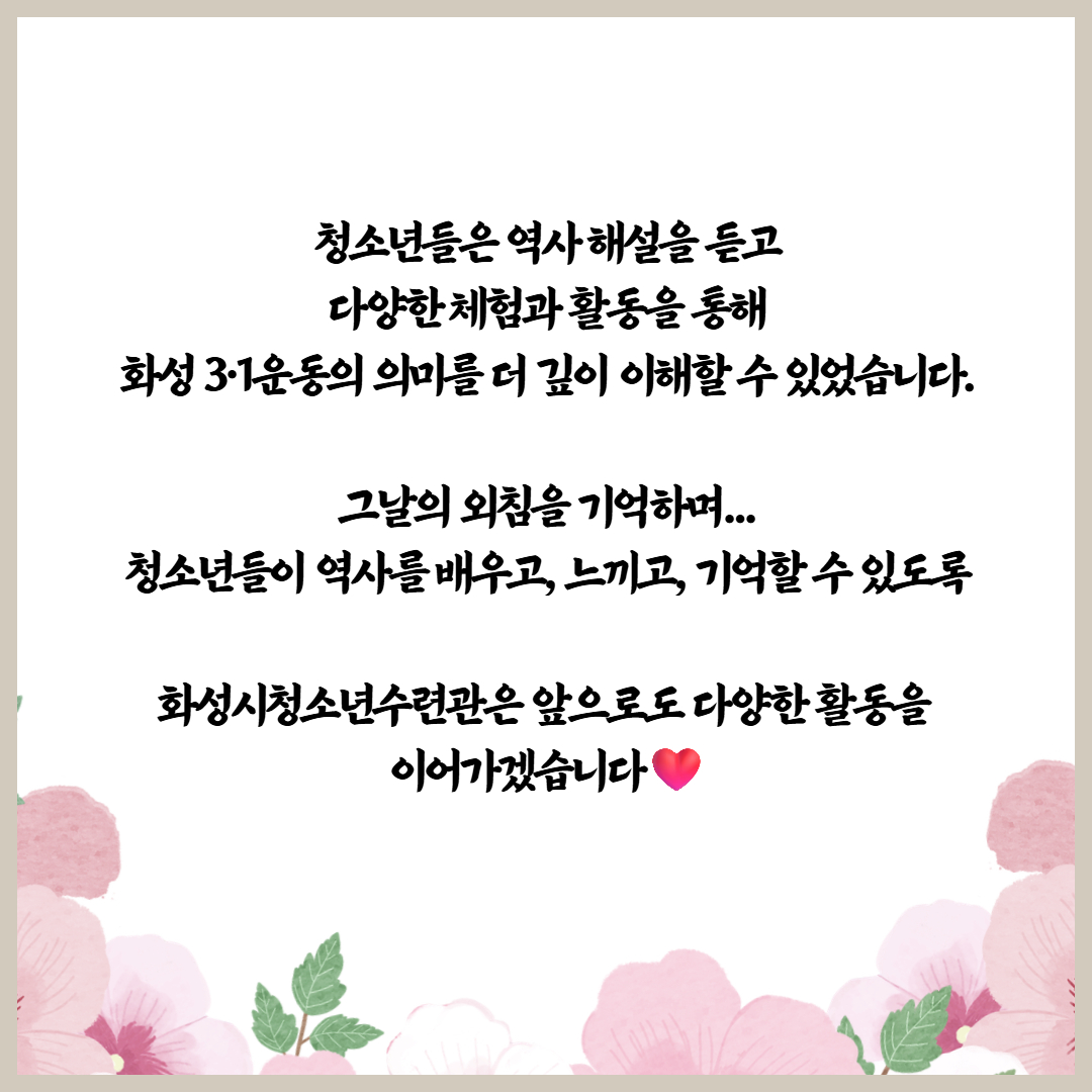 #화성시청소년수련관 #화성삼일운동 #삼일운동 #청소년역사체험 #청소년프로그램 #화성청소년 #대한독립만세 |