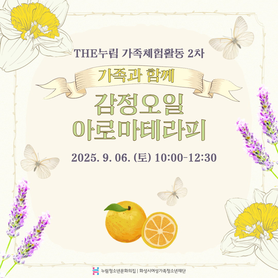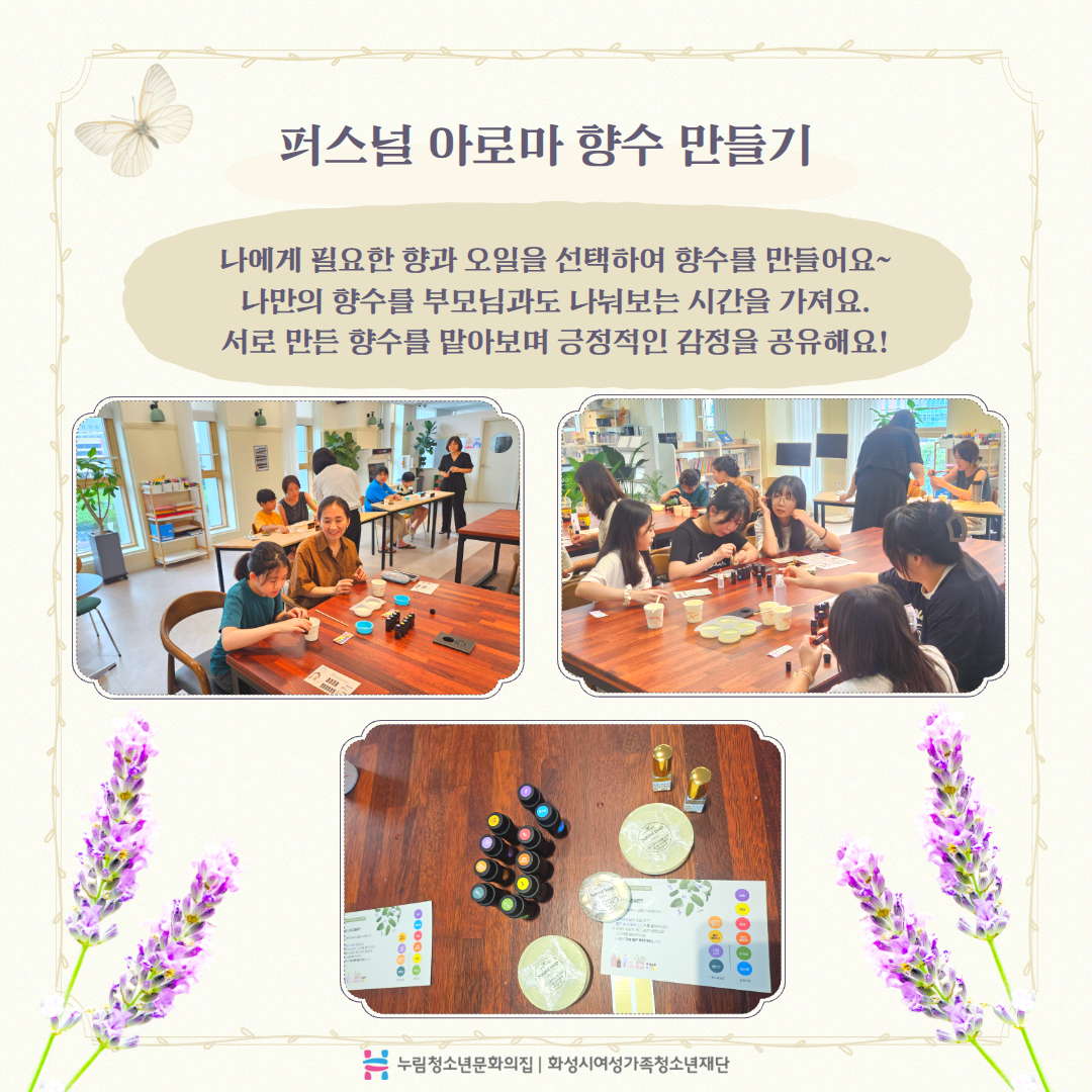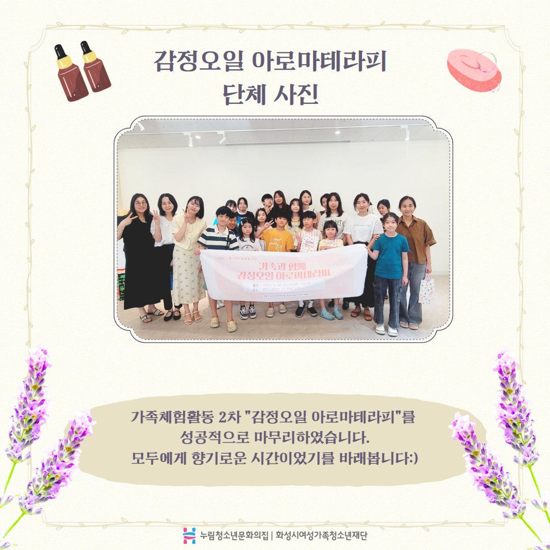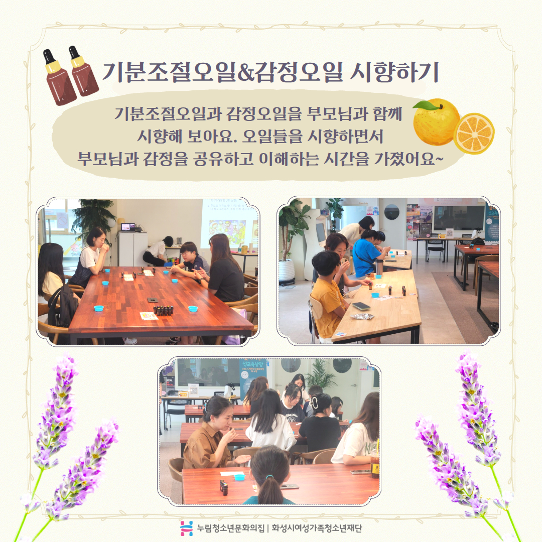 9월 6일 더누림 가족체험활동 2차 프로그램인 "가족과 함께 감정오일 아로마테라피"를 진행하였습니다.