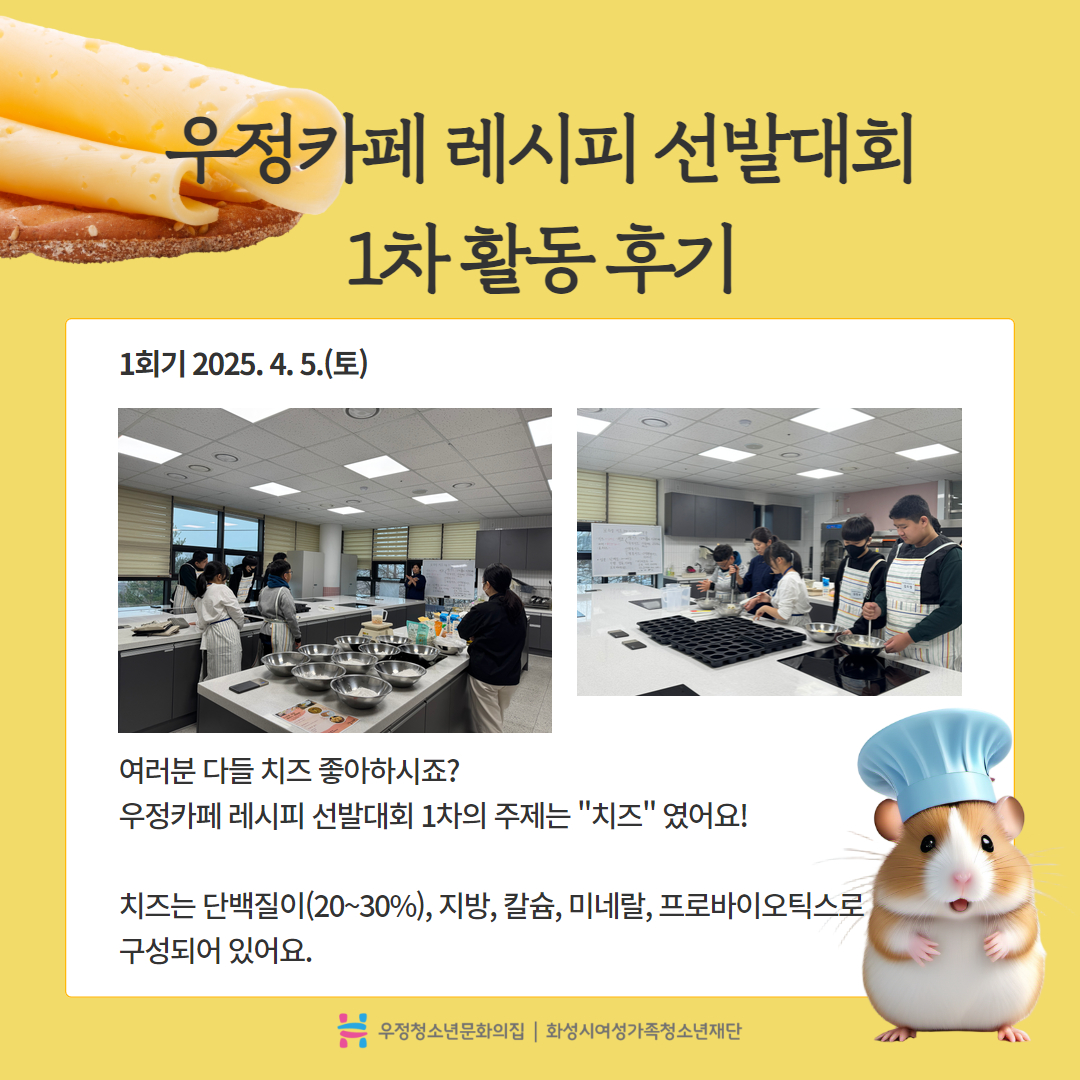 여러분 다들 치즈 좋아하시죠? 우정카페 레시피 선발대회 1차의 주제는 "치즈" 였어요!