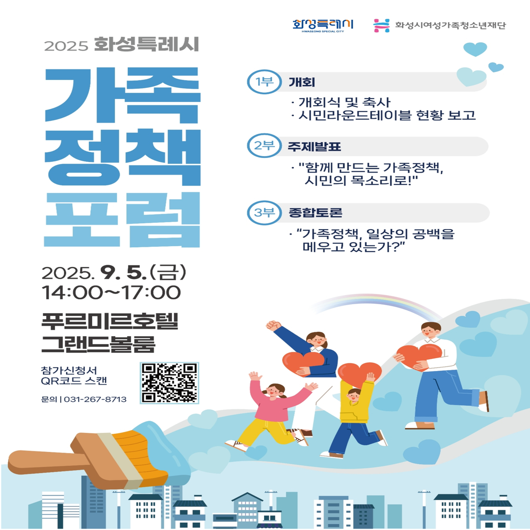 「제1회 화성특례시 가족정책 포럼」 참가자 모집 ○ 일 시: 2025. 9. 5.(금) 14:00 ~ 17:00