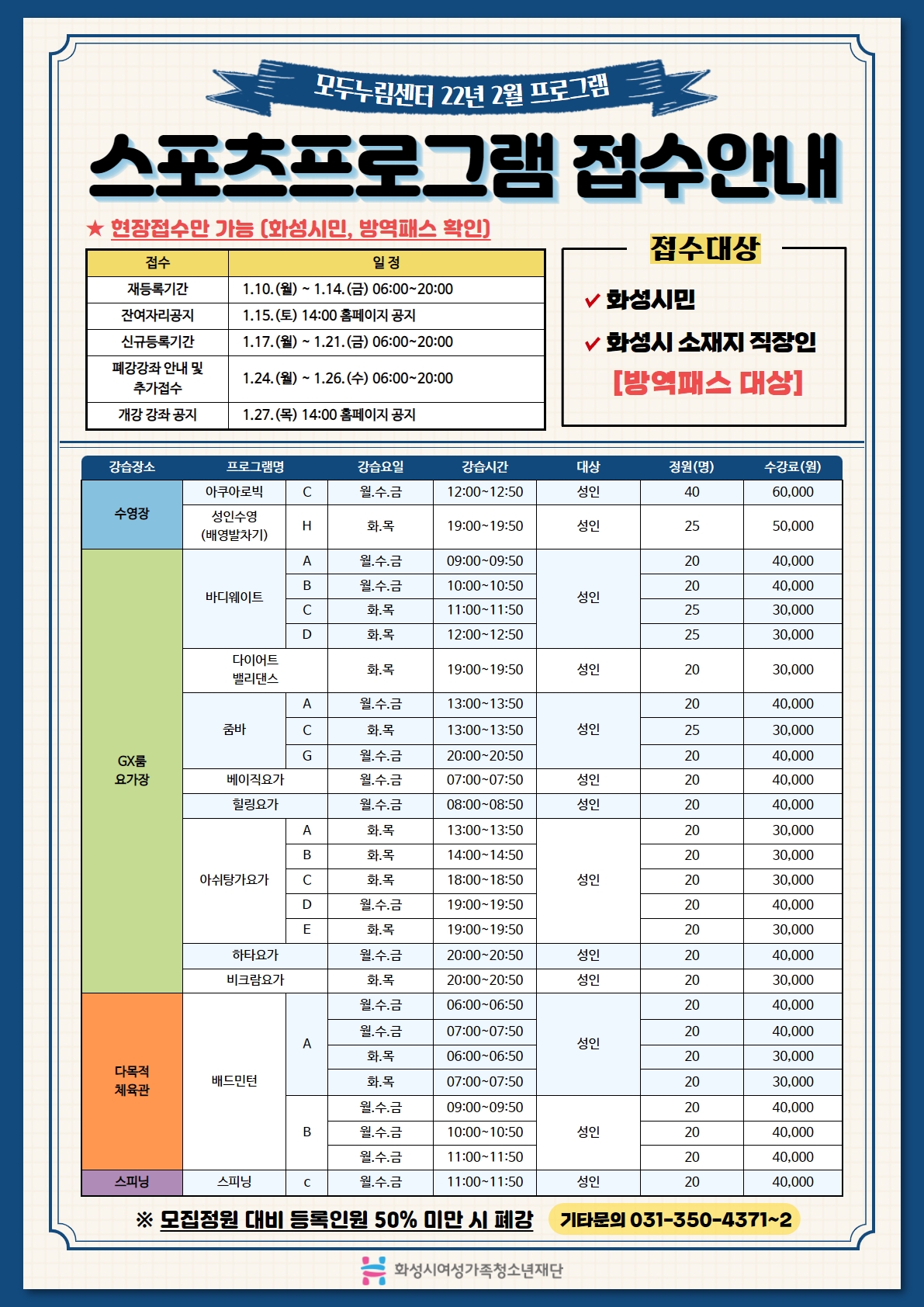제목 [모두누림센터]2월 스포츠프로그램 접수안내