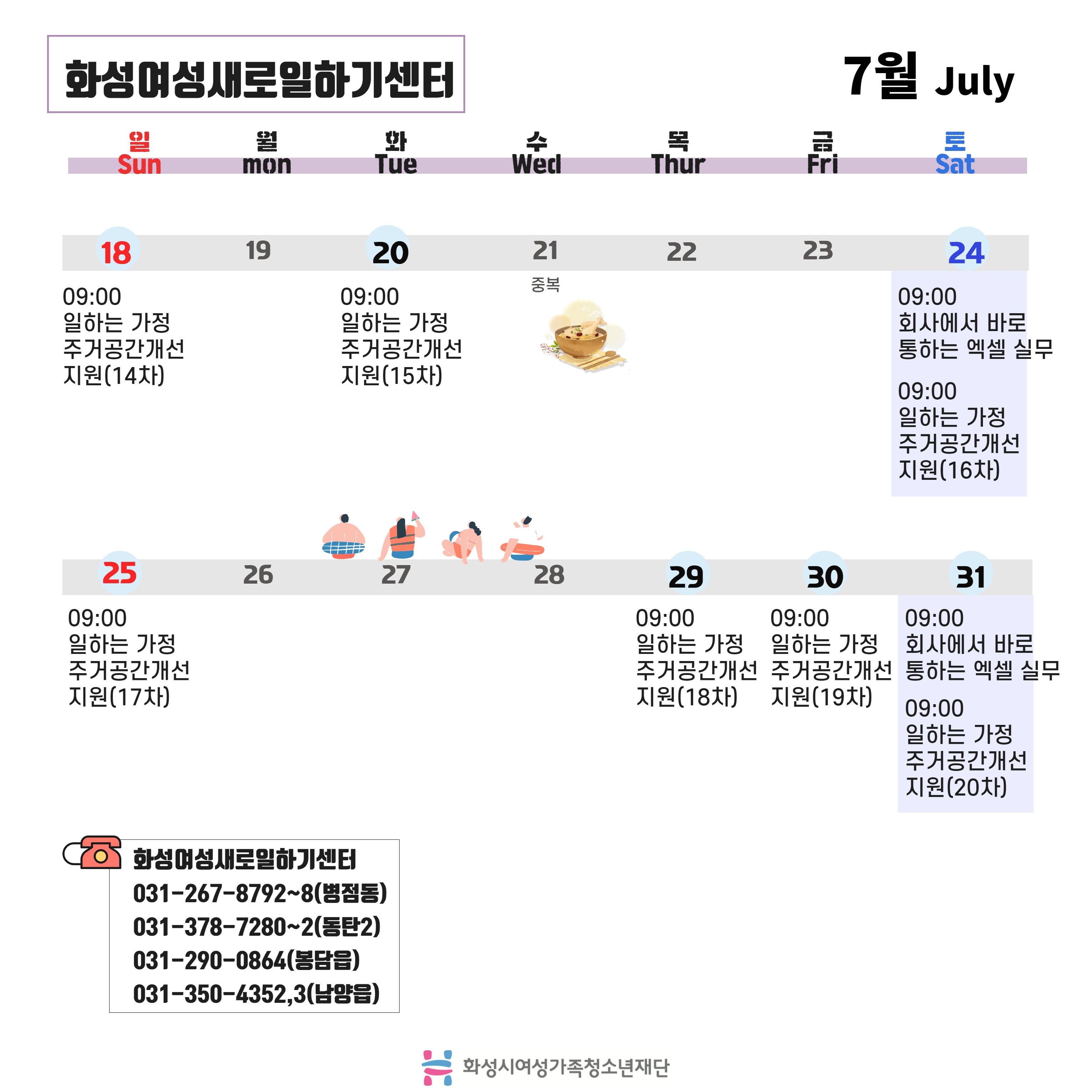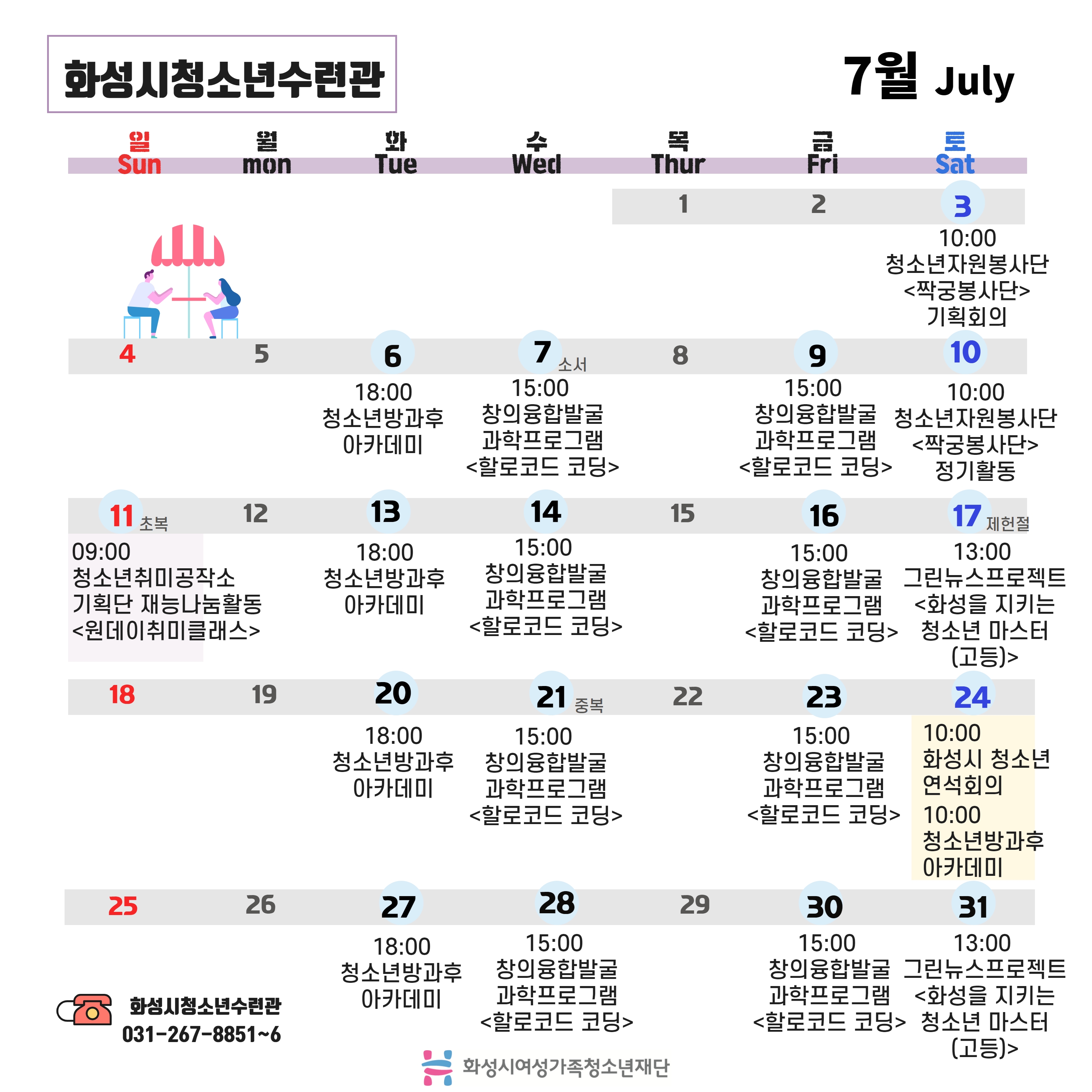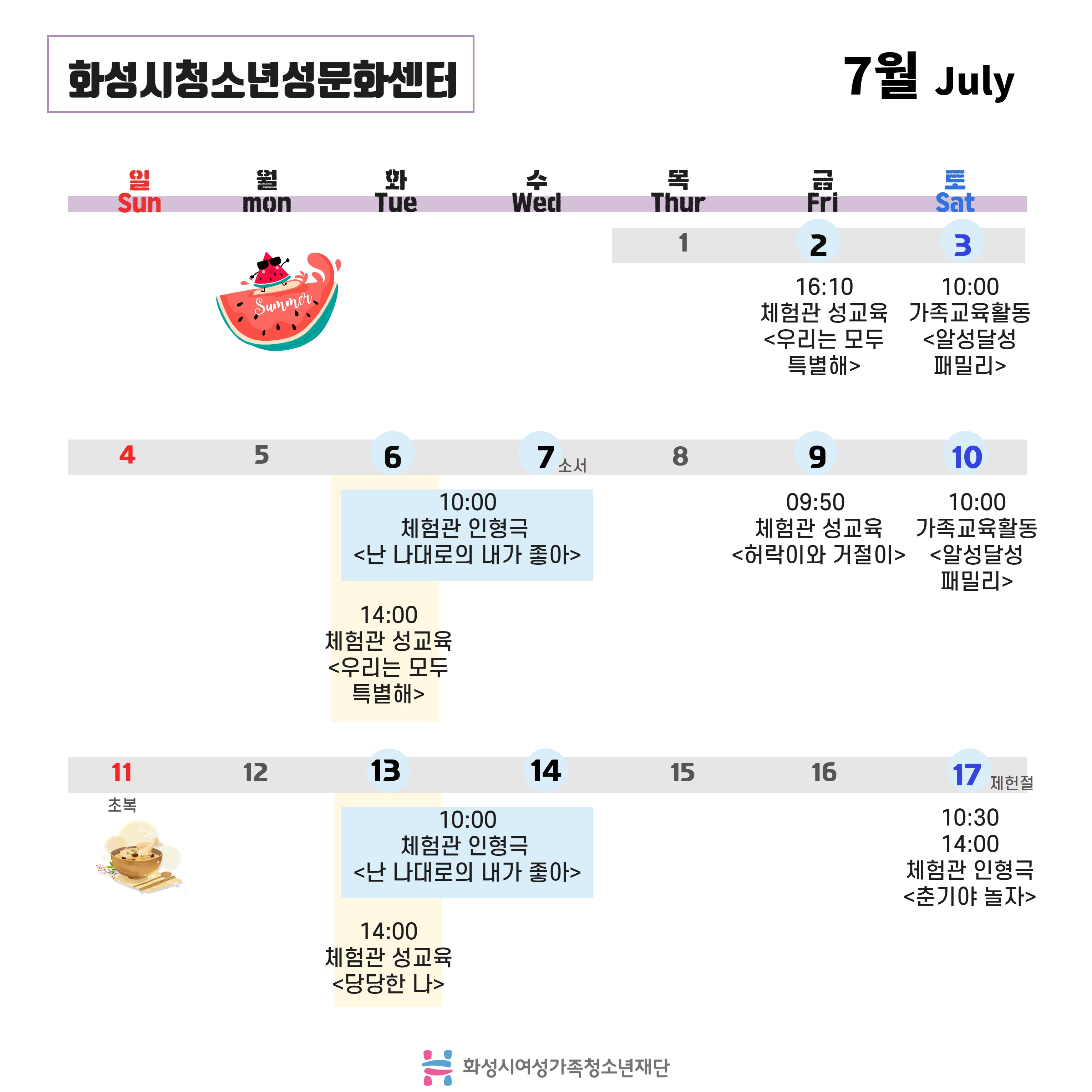 | 제목 | 화성시여성가족청소년재단 7월 일정 안내 | ||
