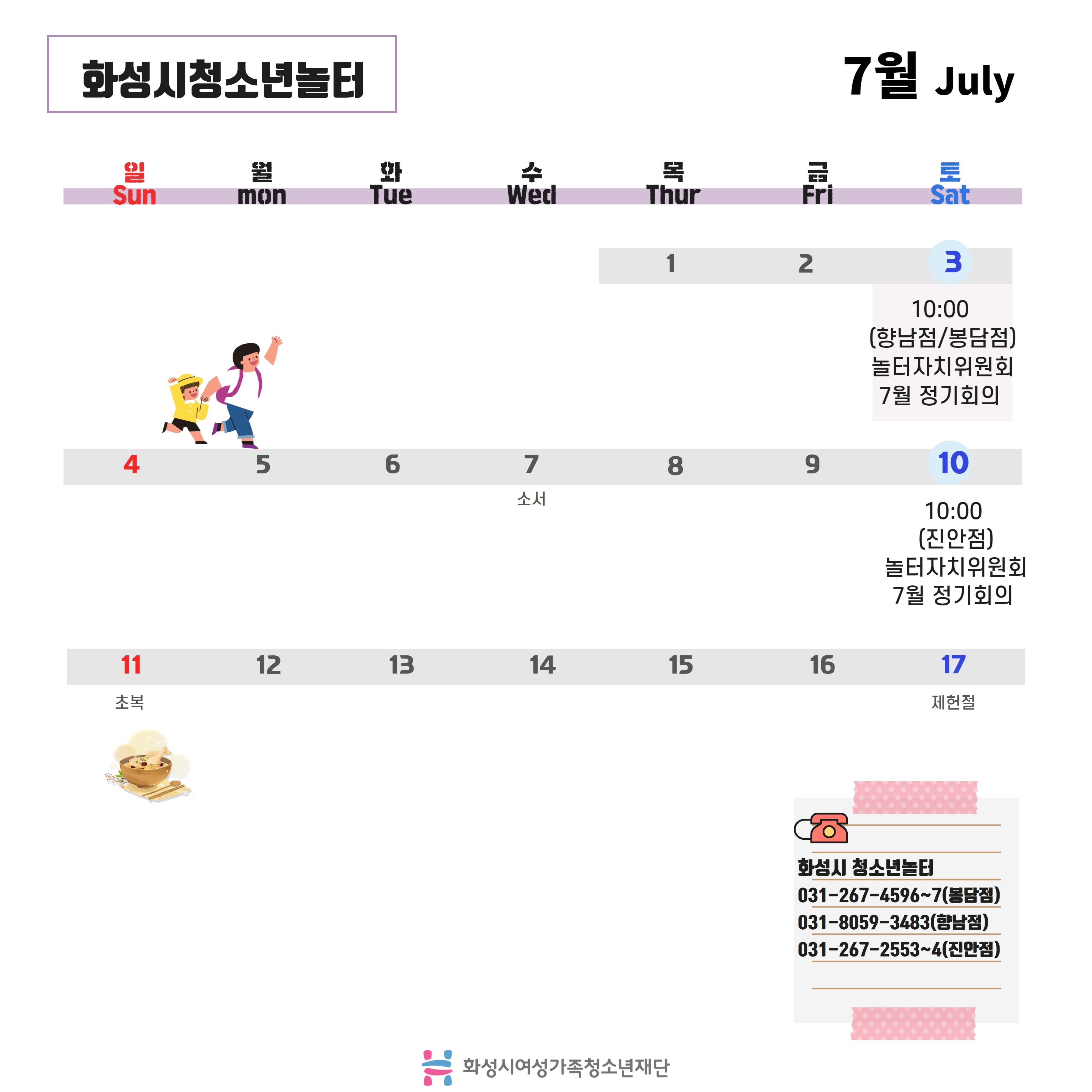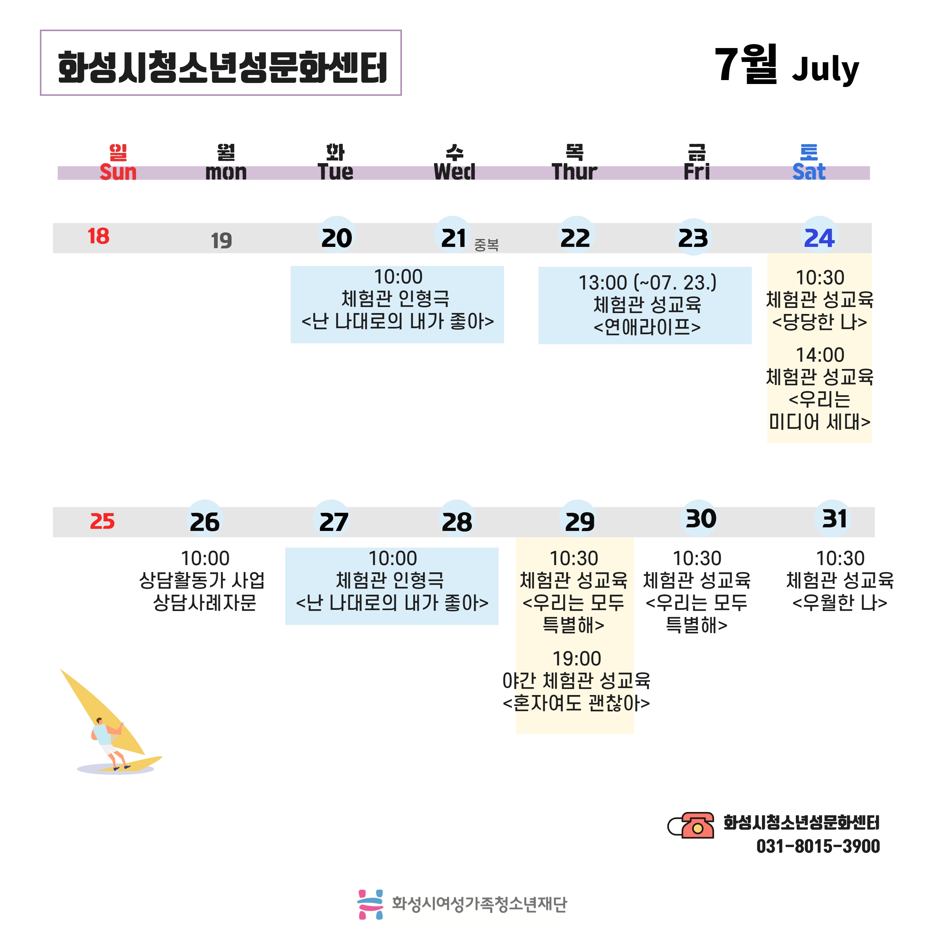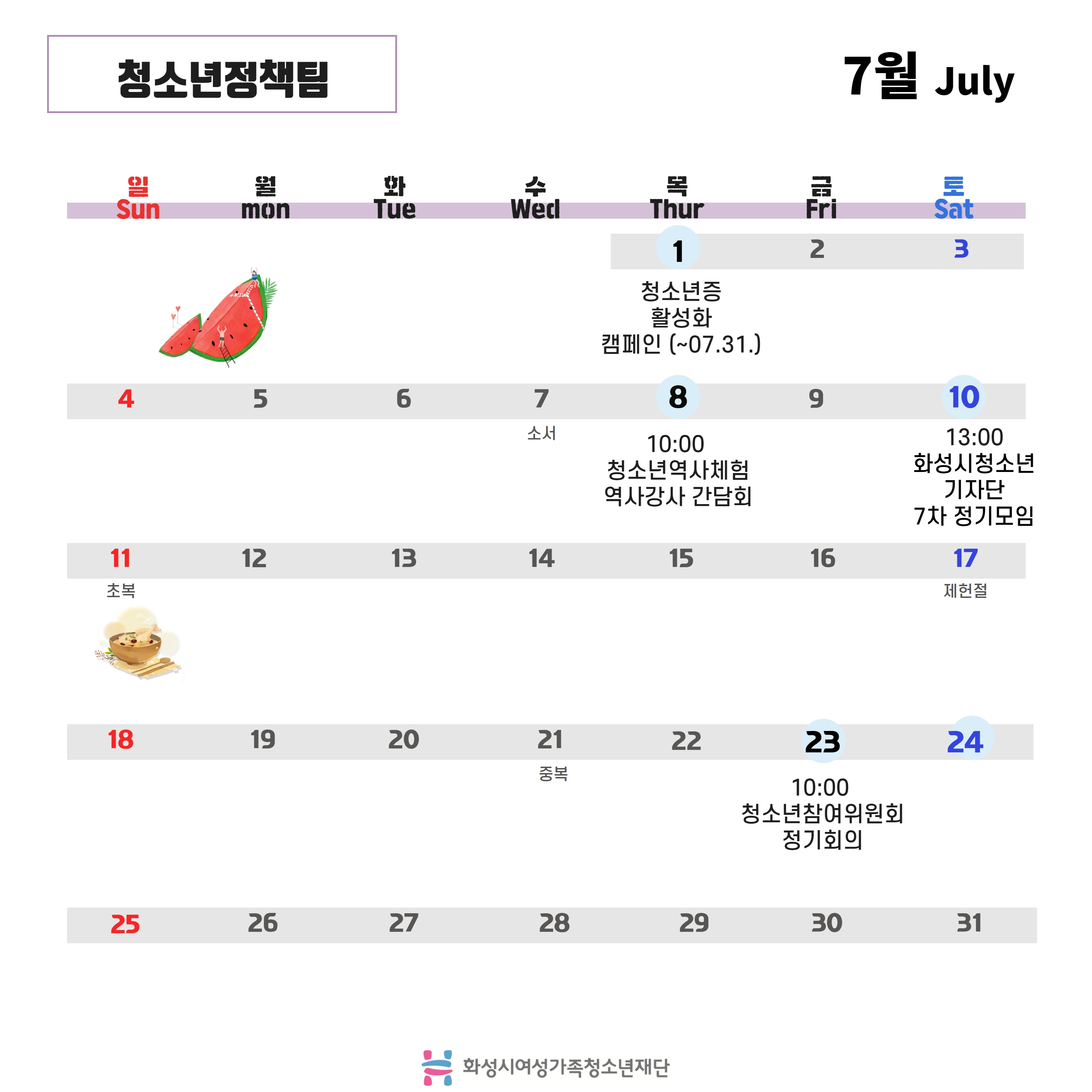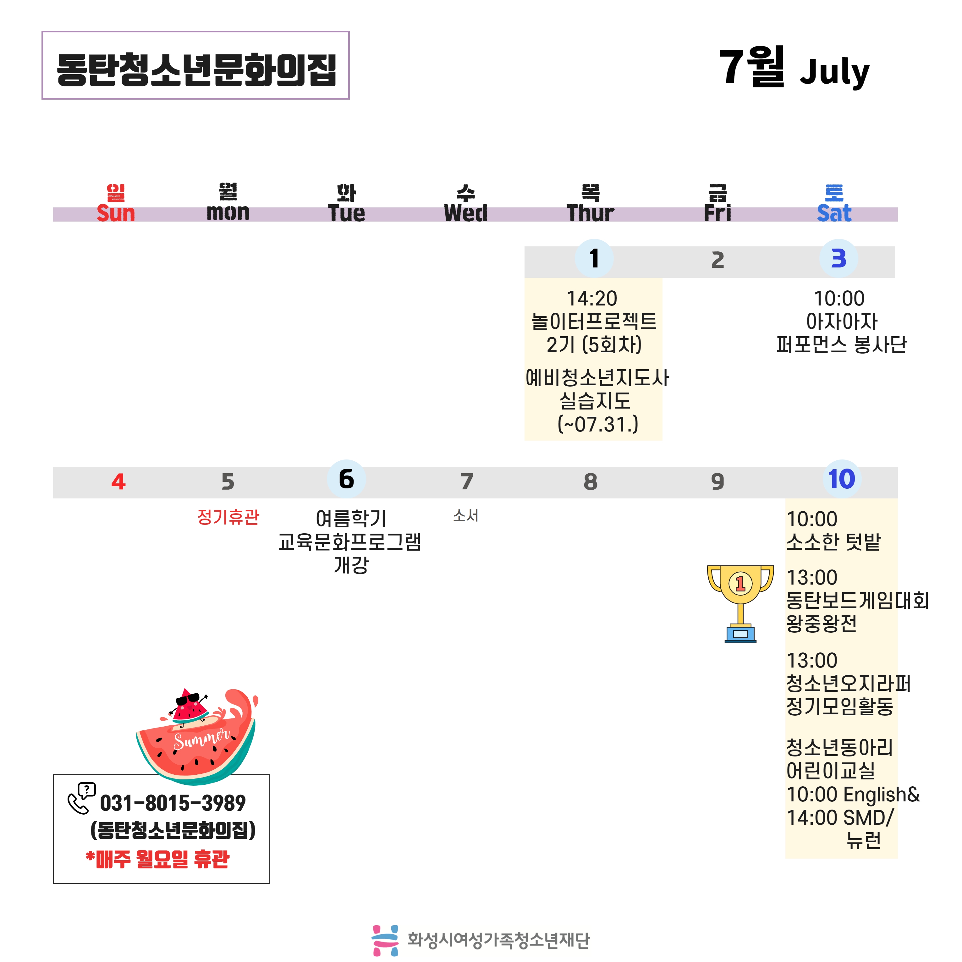 | 제목 | 화성시여성가족청소년재단 7월 일정 안내 | ||