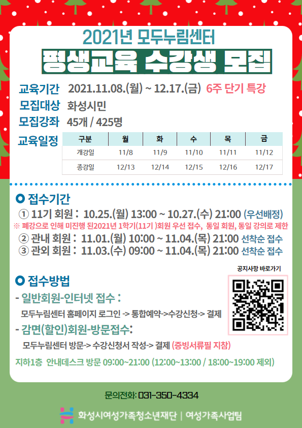 2021년 모두누림센터 평생교육프로그램 12기 단기(6주) 특강 수강생 모집