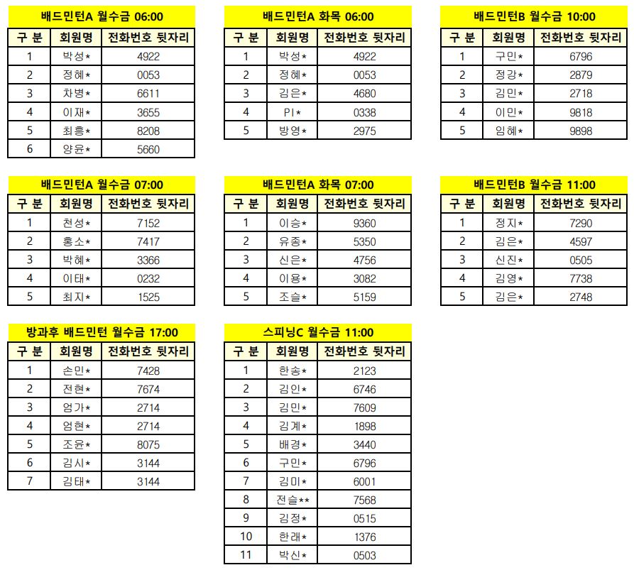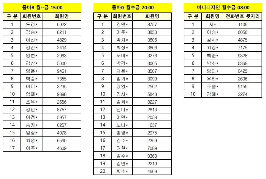 2. 프로그램 정원대비 잔여자리 등록방법 가. 잔여자리 및 폐강반 공지: 05.28.(토) 14:00 홈페이지 공지 나. 잔여자리 등록: 05.30.(월) ~ 05.31.(화) 06:00~20:00 현장 선착순 접수 다. 개강반 공지: 05.31.(화) 14:00 홈페이지 공지 3. 6월 신규 스포츠프로그램 폐강 안내(정원 50% 미만) 3강좌 가. GX : 초급 밸리댄스 나. 실내체육관: 배드민턴B(월수금 09시) 다. 스피닝: 스피닝D
