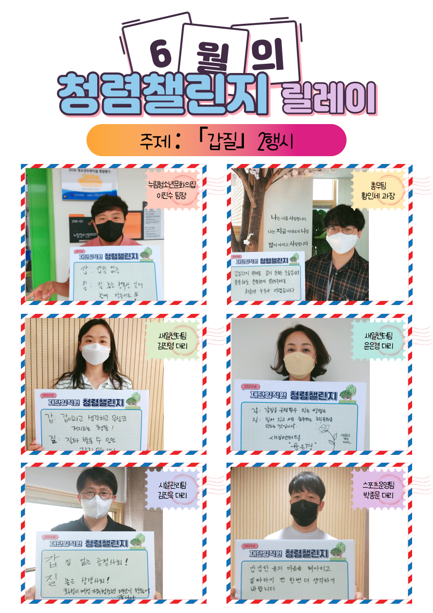 | 제목 | [6월 재단 임직원 청렴챌린지 릴레이] 5월 청렴다짐이벤트 수상자 | ||