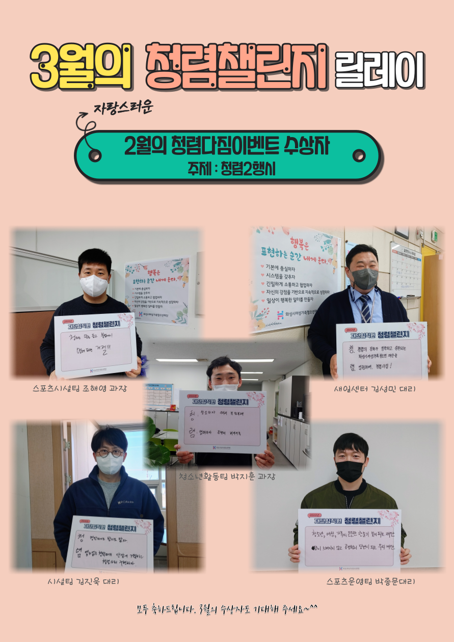 | 제목 | [3월 재단임직원 청렴챌린지 릴레이] 2월 청렴다짐이벤트 수상자 | ||