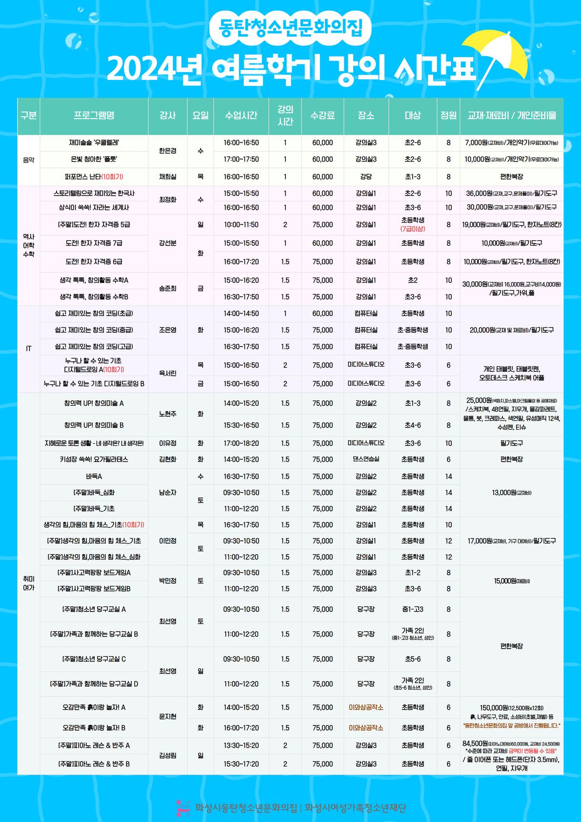 6월부터 교육문화프로그램 여름학기를 운영하고자 합니다.