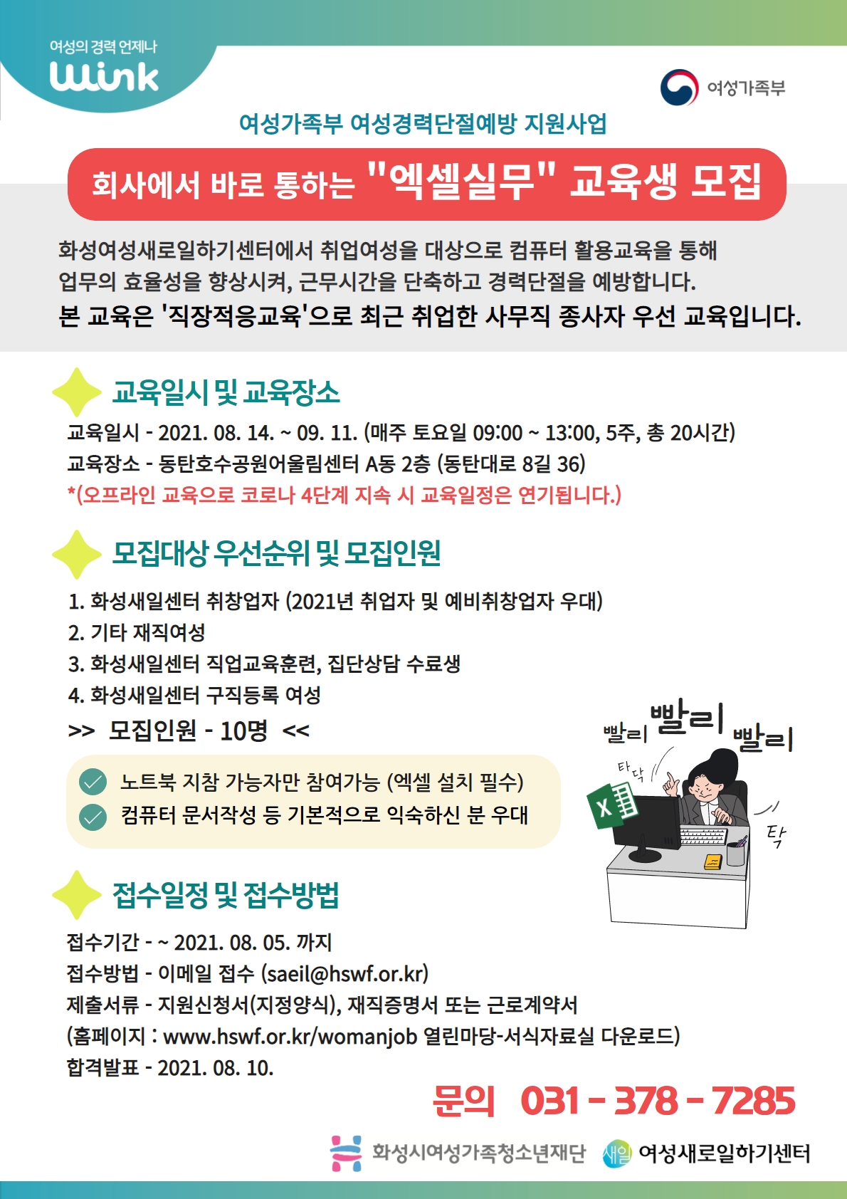 제목 [화성여성새일센터] 직장적응교육 - 엑셀실무2차 교육생 모집
