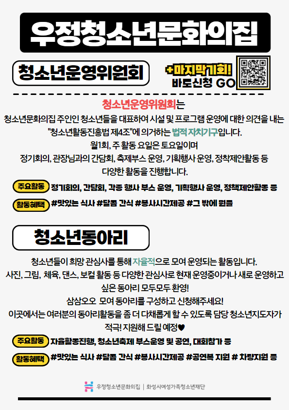 제목 [우정청소년문화의집] 2024년 청소년참여자치기구 추가모집