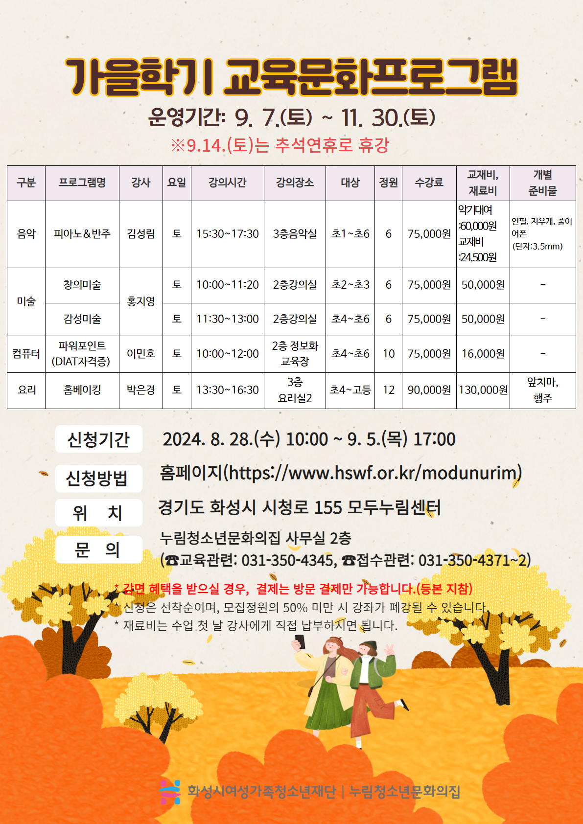 제목 누림청소년문화의집 가을학기 수강생 모집