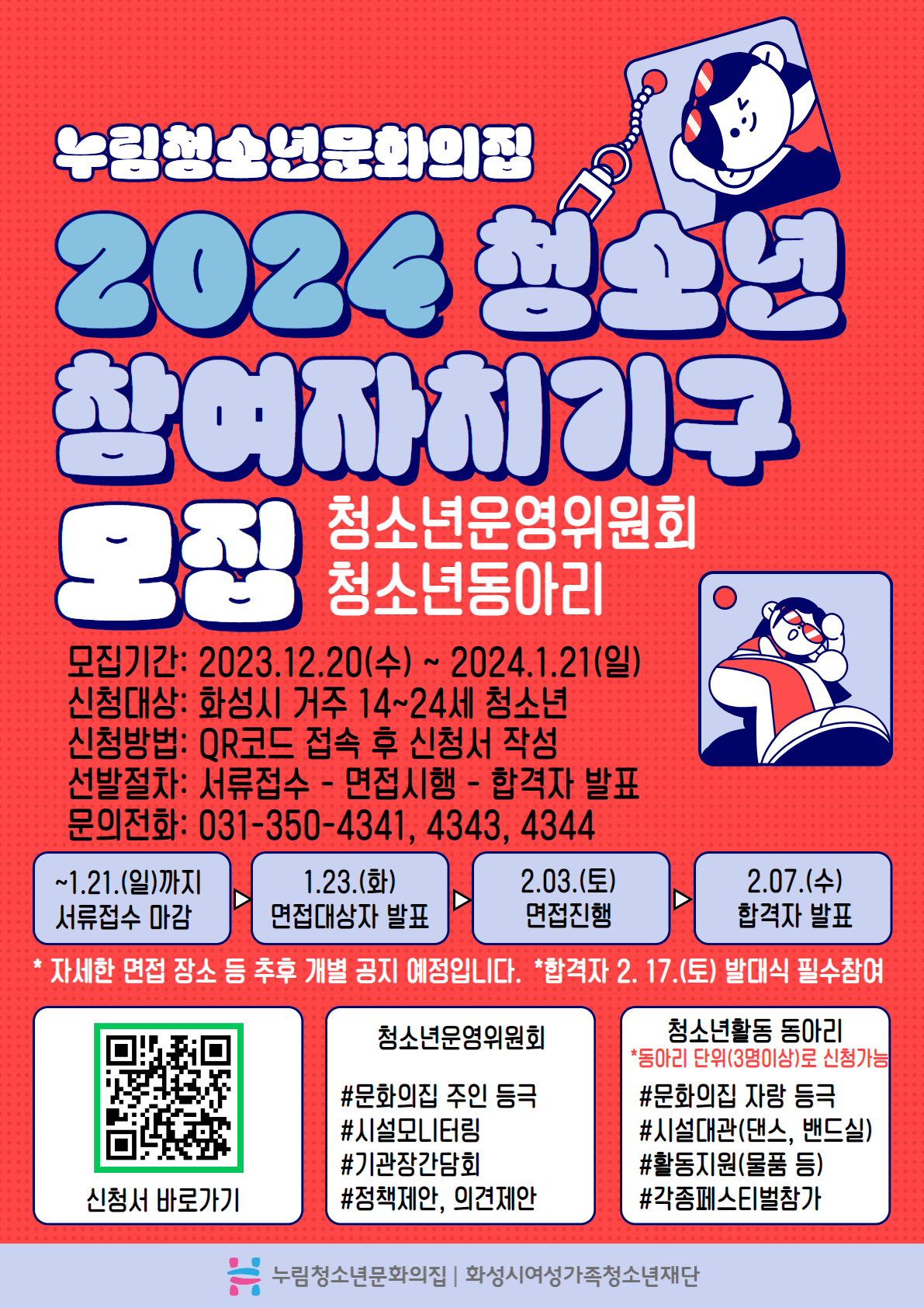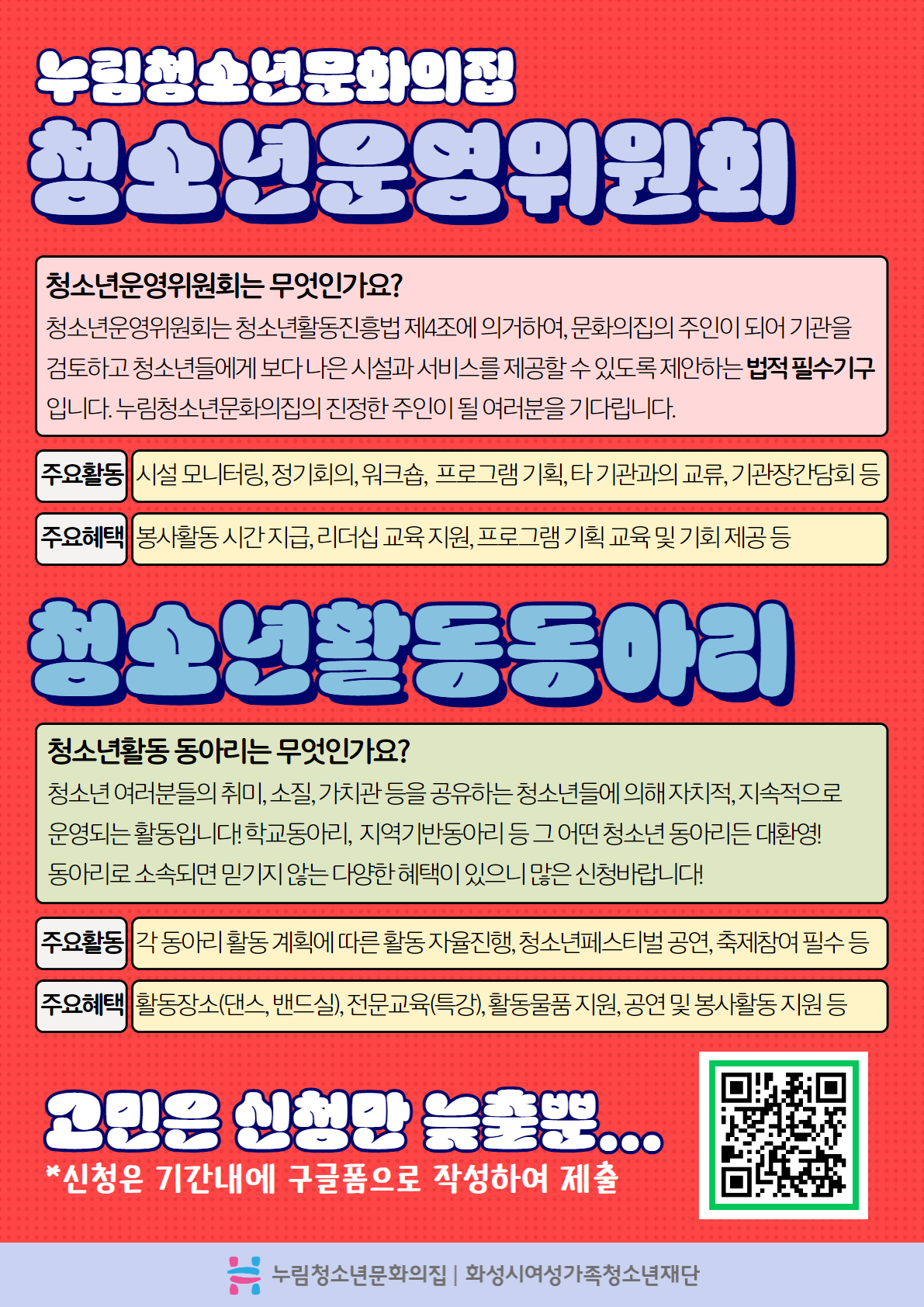 제목 [누림청소년문화의집] 2024 청소년참여자치기구 모집(청소년운영위원회, 청소년활동 동아리)