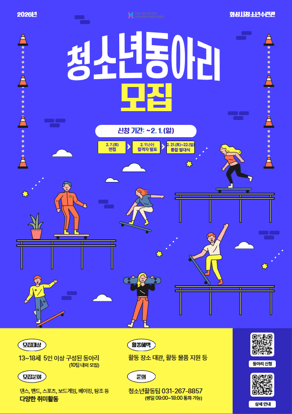 | 제목 | [화성시청소년수련관] 2026년 청소년동아리 모집 | ||