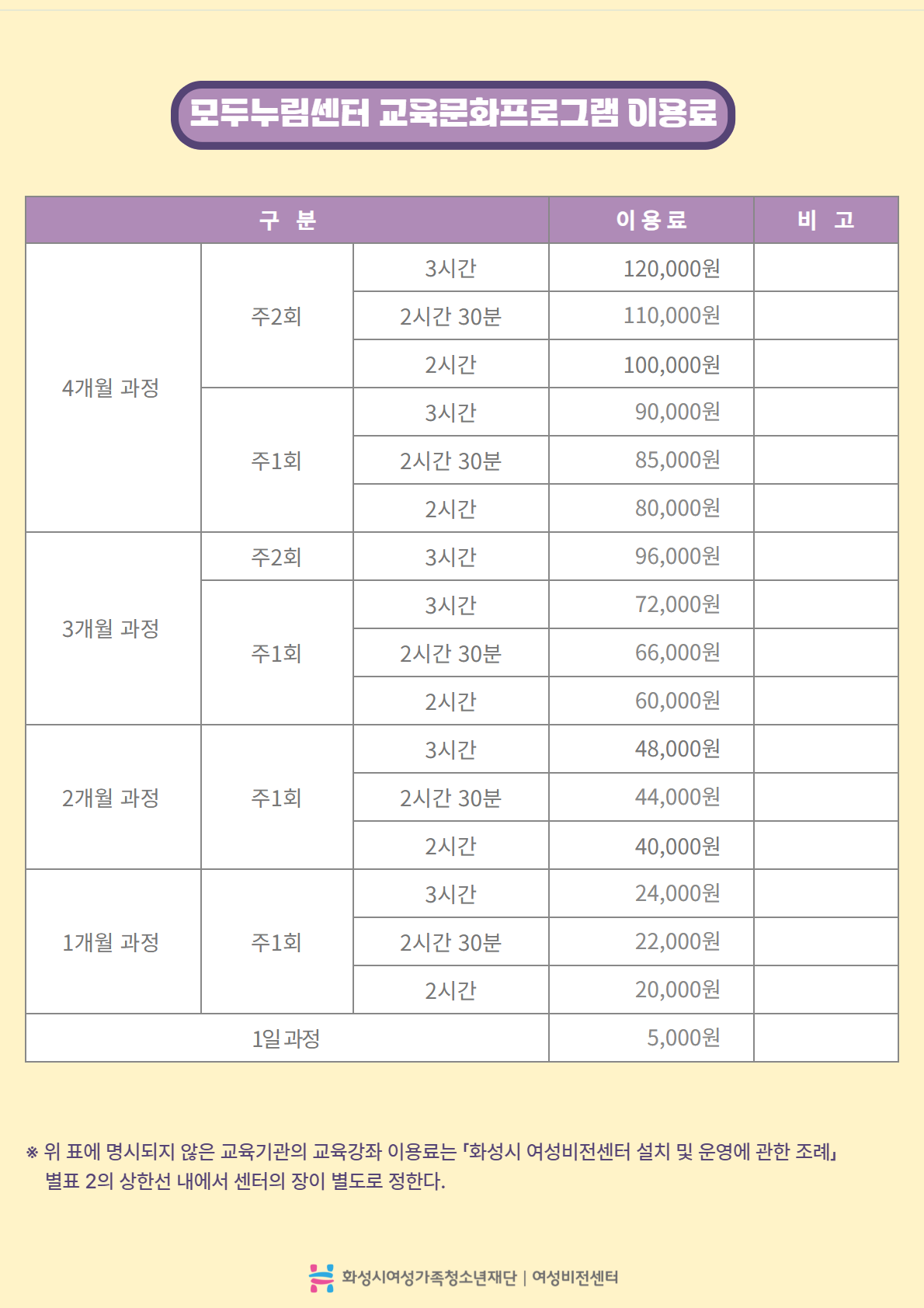 | 운영센터 | 화성시여성가족청소년재단 | ||