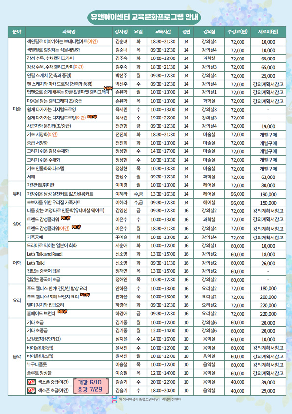 첨부 파일 아이콘배움과정.zip (6.49MB)다운로드 아이콘 파일 아이콘자격과정.zip (554.72KB)다운로드 아이콘 파일 아이콘26년 2학기 유앤 교육 1.jpg (450KB)다운로드 아이콘 파일 아이콘26년 2학기 유앤 교육 2.jpg (501.17KB)다운로드 아이콘 파일 아이콘26년 2학기 유앤 교육 3.jpg (673.55KB)다운로드 아이콘 파일 아이콘26년 2학기 유앤 교육 4.jpg (676.53KB)다운로드 아이콘 파일 아이콘26년 2학기 유앤 교육 5.jpg (311.18KB)다운로드 아이콘