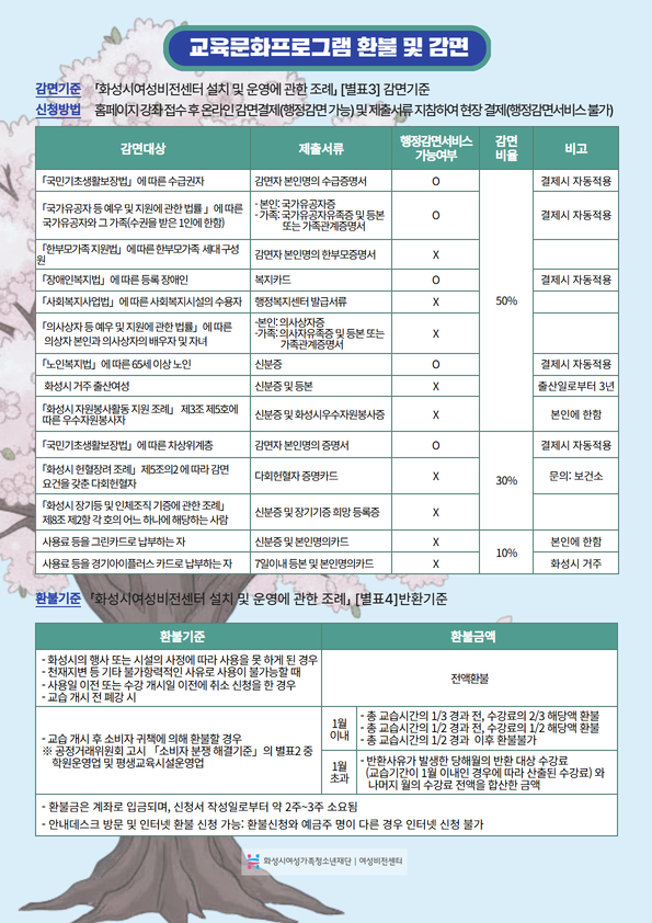 ※ 12회 수업을 보장해 드리며화성시주최행사 및 재단 사정에 의해 교육일정 변경이 있을 수 있습니다.
