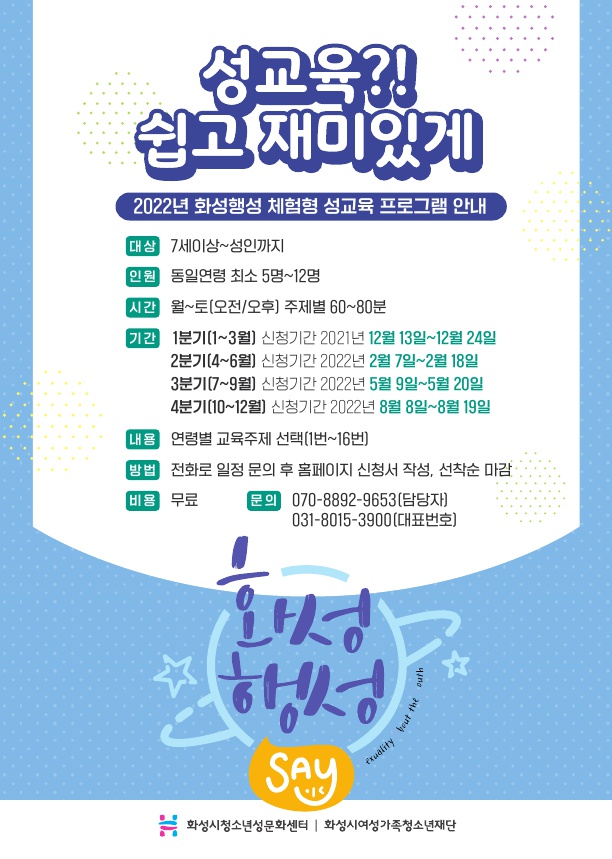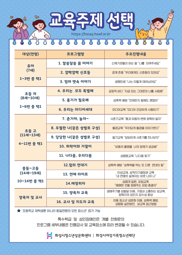 제목 [화성시청소년성문화센터] 2022년 체험관 교육 신청 및 주제 선택 안내