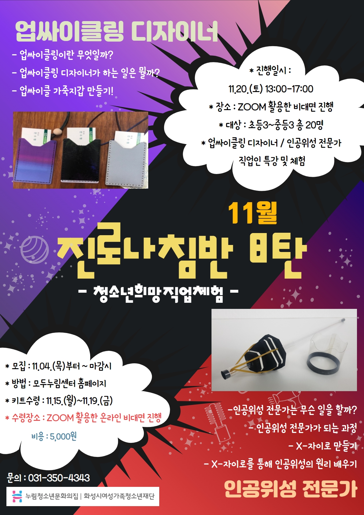 제목 [누림청소년문화의집] 진로나침반 8탄 < 업싸이클링 디자이너 / 인공위성 전문가 > 편 참가자 모집